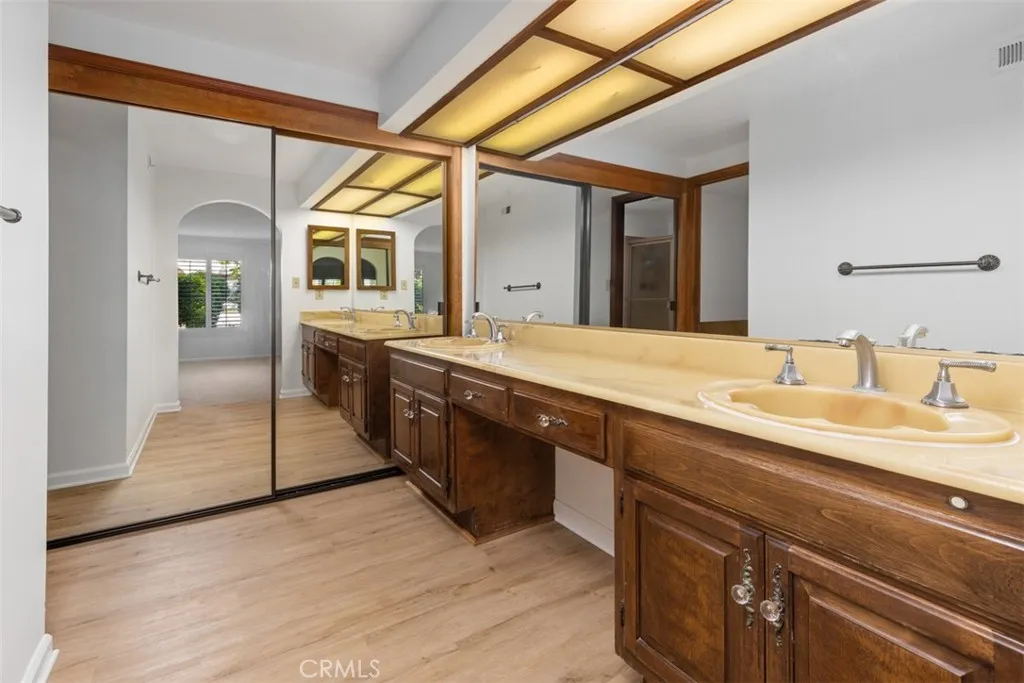 Welcome to Bixby Riviera, one of Long Beachs premier 24-hour guard-gated condominium communities! This immaculate single-level END CORNER unit offers 2 bedrooms, 2 bathrooms, and approximately 1,454 square feet of beautiful living space. Ideally situated on the ground level in a desirable interior location, this home enjoys peaceful surroundings with tranquil views of lush gardens and mature trees. Step inside to a freshly painted interior featuring luxury vinyl flooring throughout the living area, dining room, kitchen, and hallway, complimented by new carpet in both bedrooms.The inviting living room showcases a cozy gas fireplace, wet bar, and large north-facing sliders that fill the space with an abundance of natural light. The well-maintained kitchen is equipped with newer stainless steel appliances and a charming breakfast area with a large east-facing window, perfect for enjoying your morning coffee. The spacious primary suite offers both comfort and functionality, featuring a large ensuite bathroom with dual sinks, a separate shower, and soaking tub. Additional highlights include wood shutters and crown molding in both bedrooms, a convenient in-unit laundry room, and a hall bathroom with a walk-in jetted tub/shower combination. Enjoy seamless indoor-outdoor living with a private north-facing patio off the living room, along with direct access to adjacent parking through a private gate, ideal for guests and everyday convenience. This unit also includes two oversized subterranean parking spaces with bonus storage and direct elevator access to the first level. Located no