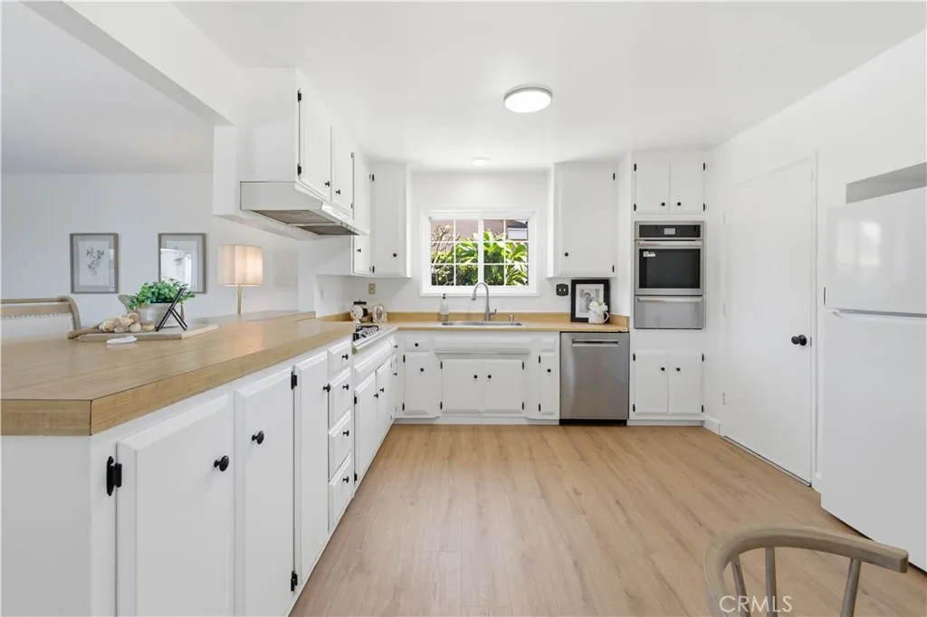 Beautifully upgraded West Garden Grove home featuring 3 bedrooms, 2 bathrooms, and a versatile den/bonus roomcurrently used as a 4th bedroom. Light, bright, and open with luxury vinyl flooring throughout, this home offers a spacious living room with a cozy fireplace and an updated kitchen that opens seamlessly to the main living area. Sliding doors lead to the backyard with a patio and pool, creating an ideal indoor-outdoor flow. The bonus room also features direct backyard access, perfect for guests, a home office, or additional living space. Additional highlights include central air conditioning, a newer roof, fresh interior paint, and updates throughout. Conveniently located near highly rated schools, shopping, dining, and freeway access.