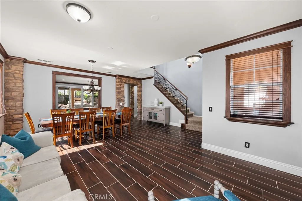 This is the one! Welcome to this stunning home featuring a beautiful open floor plan and exceptional curb appeal complete with a custom water fountain welcoming you at the front entry. As you step inside, youll be greeted by an elegant formal living room and dining room with porcelain tile flooring flowing throughout the downstairs. The spacious family room offers a built-in media center, cozy fireplace, and pool views through a custom 9-foot slider accented with designer window coverings. The gourmet remodeled kitchen is a chefs dreamfeaturing a breakfast bar island with pendant lighting, quartz countertops, built-in microwave, and ample cabinetry for storage. This versatile layout includes a main-level bedroom and full bathroom, ideal for guests or multi-generational living, as well as a large home office with built-in cabinetryperfect for remote work. Upstairs, retreat to the luxurious master suite with private access to an oversized deck offering breathtaking mountain and city lights views. The spa-like master bath showcases dual custom stone vanities with raised basins, a separate soaking tub, and a tiled walk-in shower with glass enclosure. The custom walk-in closet has been professionally designed for maximum organization. Additional highlights include crown molding, recessed lighting, custom window coverings, wood flooring upstairs, and a custom carpet runner along the staircase and hallway. The spacious game room features ceiling fans and plush carpet, while the secondary bedrooms are generously sizedone even rivaling a master suite in size. Step outside to your pr