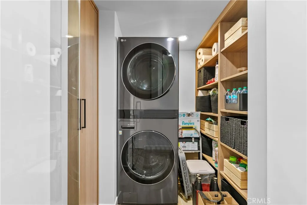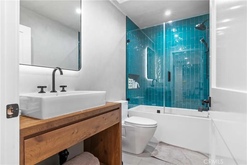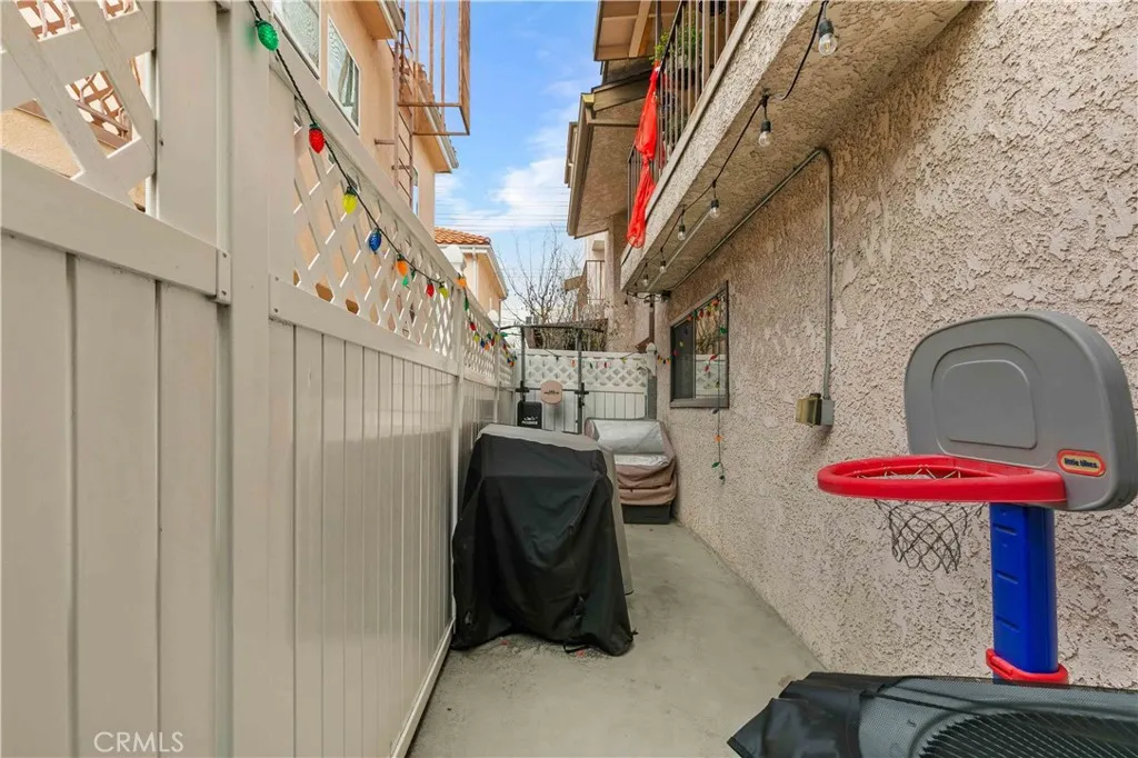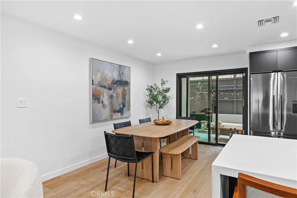 Discover elevated Burbank living in this fully remodeled, single-level condo offering 1,231 sq ft of curated design and effortless comfort. Every detail has been thoughtfully reimagined with premium finishes and a clean, modern aesthetic. An open floor plan anchors the home, highlighted by smooth-coat walls + ceilings, updated windows, wide-plank flooring, and recessed lighting. The living room centers around a striking black brick fireplace and custom wood-slat media wall. Large sliding doors blur the line between indoors and out, opening to an oversized covered patioyour new lounge, dining deck, and year-round hangout. The patio/side yard adds extra space for grilling, dinning and storage. The grilling station and dedicated lighting will be included. The kitchen delivers style and function with a full Fisher & Paykel appliance suite (gas range/oven, French-door refrigerator, dishwasher), matte black cabinetry, warm wood uppers, quartz surfaces, under-cabinet lighting, a glass-front display cabinet, and peninsula seating. Both bedrooms feel calm and intentional, offering generous closets, custom shelving, and a built-in vanity desk. One bathroom features a Restoration Hardware sink, while both are finished with designer tile, Brizo fixtures, and modern detailing. The dedicated laundry room adds convenience with built-ins and a glass-door entry. Smart upgrades include an alarm system, central HVAC, and secured garage parking with two assigned spaces + dedicated Tesla/EV charging. Private storage cabinets are located above the parking. Situated in a convenient Burbank locati