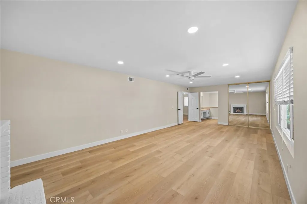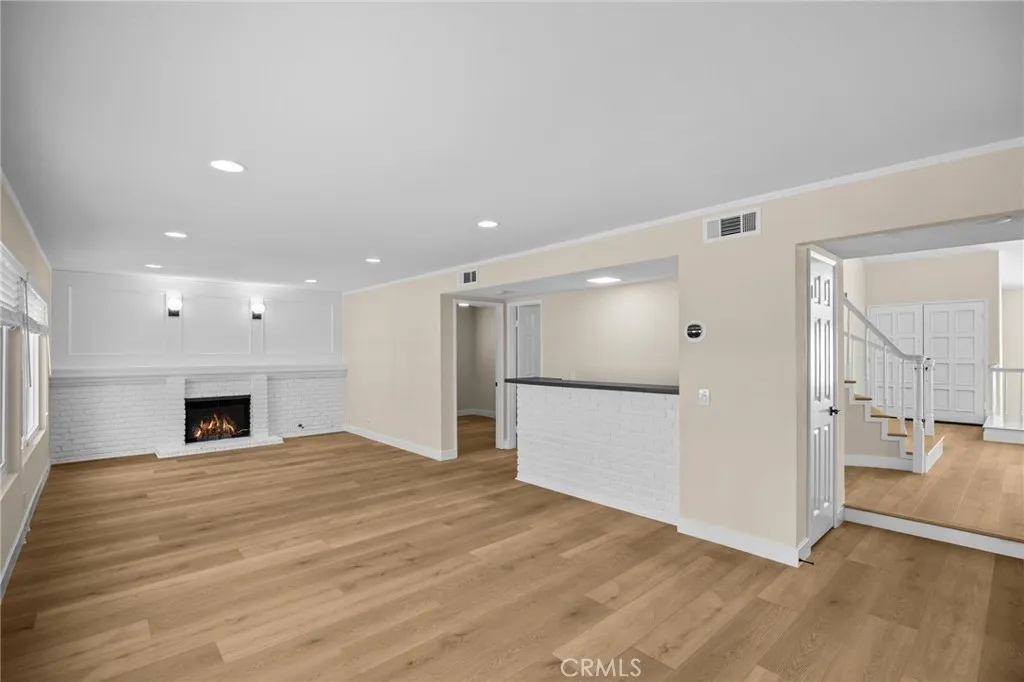 Welcome to this beautifully refreshed home located at the end of a quiet cul-de-sac just steps from the scenic Venta Spur Trail and Silkwood Park. Enjoy the convenience of walking to Brywood Elementary, Sierra Vista Middle School, and Chinese Immersion Academy (ICIA) a highly desirable academic corridor in Irvine. Upgrades include new luxury vinyl plank flooring, fresh NEW interior paint, NEW recessed LED lighting, NEW double-paned windows & slider, ALL NEW window coverings, NEW toilets, NEW shower fixtures, & New 200 AMP Electrical Panel. The bright living room welcomes you with soaring vaulted ceilings. Open kitchen offers abundant storage and counter space and overlooks the warm, inviting family room with a fireplace & a wet bar. A main floor BR with an adjacent half bath provides flexibility for guests, a home office, or multi-generational living. The spacious open kitchen overlooks the family room, creating a seamless flow for everyday living and entertaining. It features freshly painted white cabinetry, recessed lighting, granite countertops, and stainless steel appliances, including a new range hood vented to the exterior. A new kitchen faucet and Reverse Osmosis (water purification) add convenience and quality. Large windows bring in natural light and frame views of the backyard, making the kitchen both functional and welcoming. Upstairs, the primary suite is exceptionally spacious and feels like a true retreat. It comfortably accommodates a king-size bed & features its own fireplace, NEW recessed lighting, NEW ceiling fan, and a walk-in closet. The secondary BR is