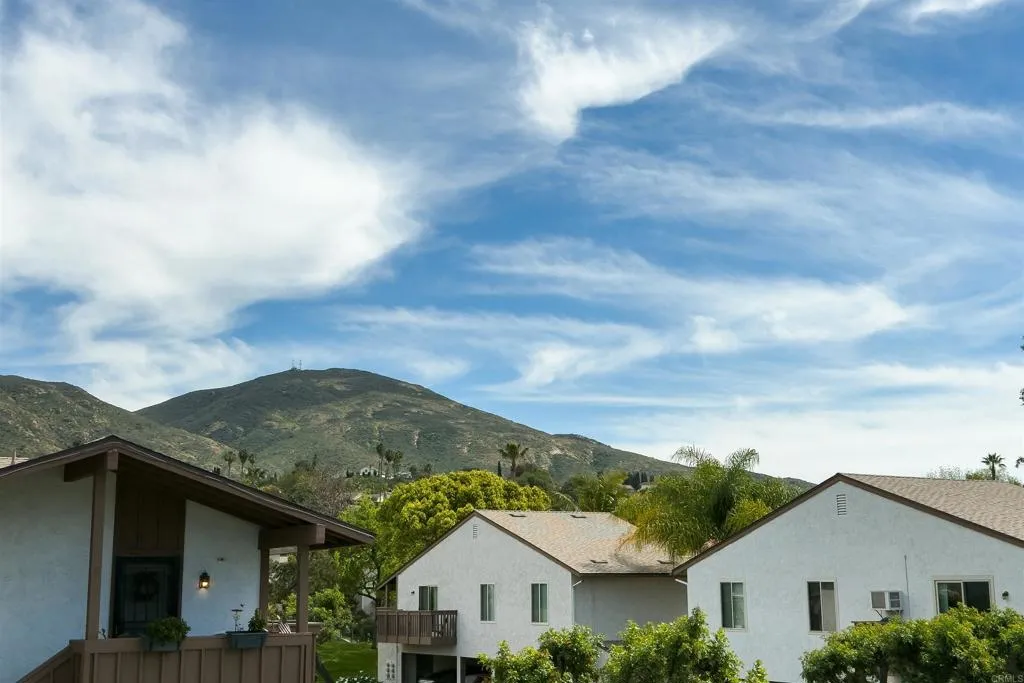 Beautiful private corner-unit condo located on a quiet cul-de-sac street. Enjoy mountain views from your spacious balcony. Mission Trails Regional Park is right across the street with over 8000 acres for the best hiking in San Diego. For more hiking choices you are close to Cowles Mountain and Lake Murray.This 2 bedroom, 1 bath condo offers 880 sq. ft of bright single-level living with the entire unit upstairs on one level and no one above you. Enjoy a covered entry once inside experience the spacious great room setting. The upgraded kitchen features granite countertops, white shaker-style cabinets, a step-up breakfast counter, stainless steel sink, dishwasher, microwave, electric cooktop stove, and stainless steel refrigerator. The bathroom also includes granite countertops. Interior highlights include upgraded vinyl plank flooring, some laminate. Wall A/C units in each room, ceiling fans and a whole house fan to keep things cool. Heat source. Recently installed new bathroom light fixtures. Exceptional storage includes attic storage with drop-down ladder access, built-in drawers, a closet safe, and additional storage in the carport area below. The water heater is located inside the unit and all appliances are electric. Additional features include an upgraded front door with oval stained glass, wrought iron security door, and two-car tandem parking directly below the unit. Plenty of guest parking on the street by your unit. Enjoy the grassy area in front of the unit and a short walk to the community pool, BBQ area, picnic area, and playground. Great opportunity for first-ti