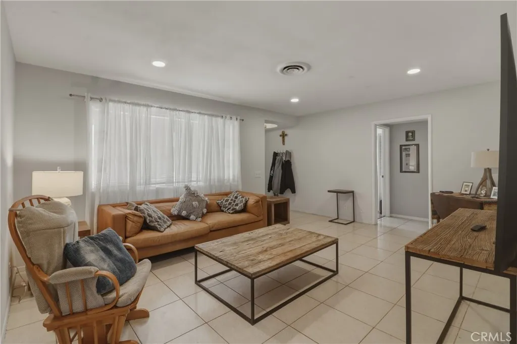Ready to see!! Welcome home! Ideal for first-time buyers, this move-in-ready starter home features paid-off solar panels, a large backyard and ADU potential. The home offers a bright living room with tile flooring and recessed lighting, two well-sized bedrooms, and two bathrooms. The primary suite includes dual closets and an updated en-suite bath with tiled tub surround and quartz vanity. The open kitchen and dining area feature butcher block countertops, stainless steel appliances, tiled backsplash, bar seating, and an updated pendant light. A great opportunity to own and invest in your future!