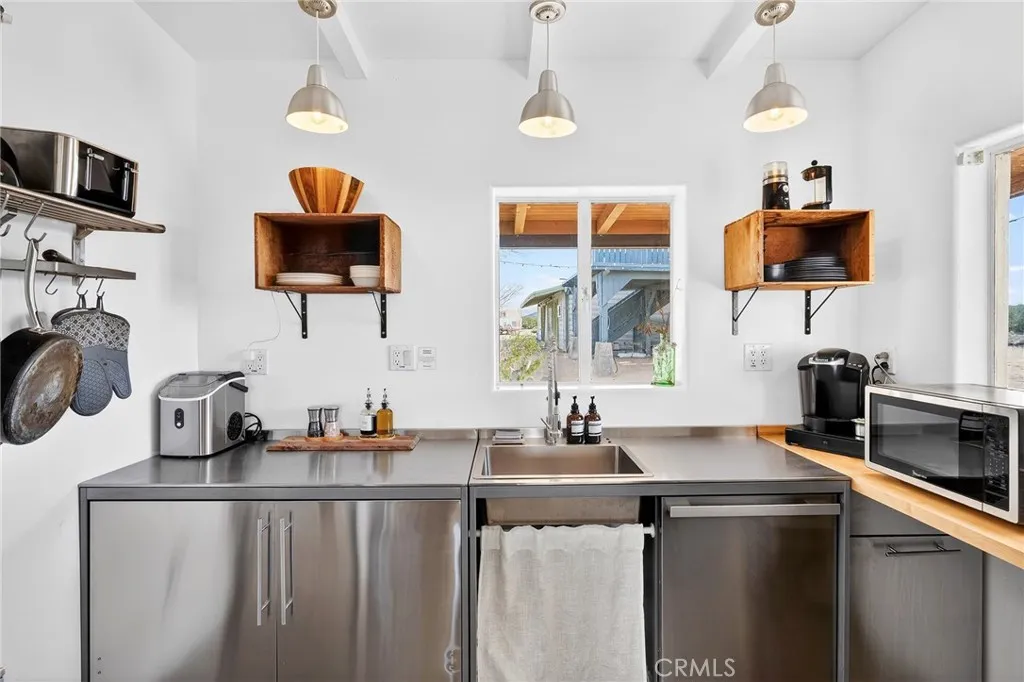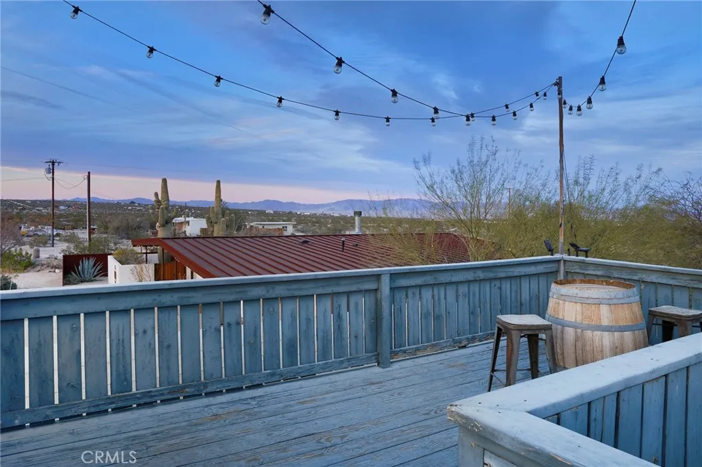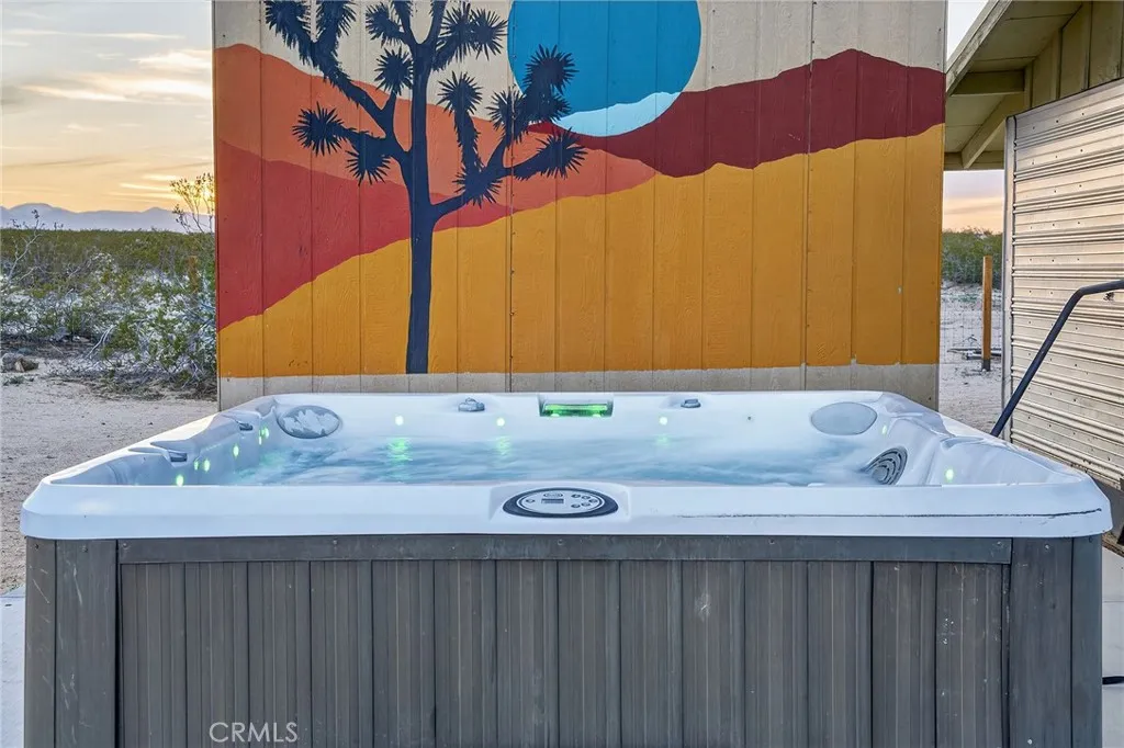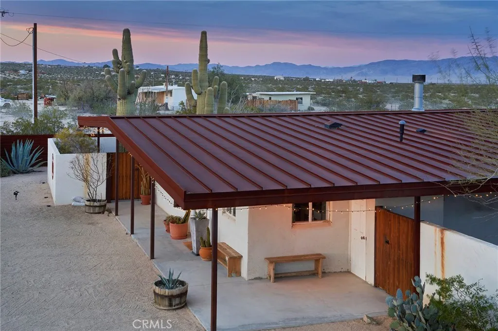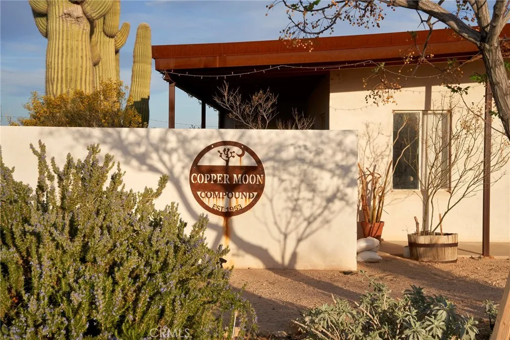 Set on a combined 5 acresincluding a separate adjoining parcelCopper Moon is a highly successful, turnkey short-term rental offering an exceptional investment opportunity in Joshua Tree. Privately situated along a quiet desert road with easy access, the property combines strong rental performance with the peaceful beauty and wide-open skies that define the high desert. The home features 3 bedrooms and 1 bathroom, with plans available for a future second bathroom, offering potential for expanded functionality and added value. The exterior features smooth stucco and a metal standing-seam roof for durability. The interior features a bright, open floor plan with inviting living spaces and a well-appointed kitchen designed for comfort and entertaining. Large windows bring in natural light and frame views of the surrounding desert landscape, creating a calm and welcoming atmosphere throughout. Complete with a wood-burning fireplace for those chilly desert evenings. Approximately 2.5 acres are fully fenced, forming a private compound centered around a thoughtfully designed courtyard with a saltwater pool, surrounded by mature saguaro cactus, olive and pomegranate trees, and vibrant desert flora. Outdoor spaces are arranged for relaxation and gathering, with lounge areas, a hot tub, a fire pit, and sweeping desert views. A standout feature is the oversized garage used as a gym and game room, equipped with a with exercise and strength training equipment, yoga space, and a ping-pong tableamenities that enhance the guest experience and contribute to the propertys strong rental appeal.