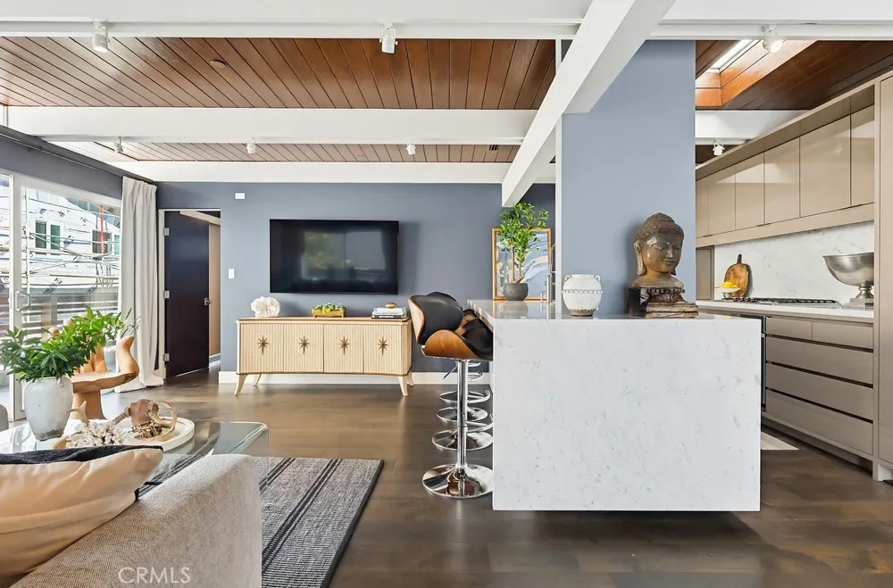 Coastal Luxury Living | Architecturally Significant Mid-Century Modern ~ PENINSULA BAYSIDE Experience refined coastal living in this completely remodeled 3-bedroom, 3-bath luxury residence, masterfully designed by renowned architect Edward Killingsworth. Blending timeless Mid-Century Modern design with contemporary elegance, this exceptional home offers a seamless indoor-outdoor lifestyle in a private, serene setting. Each of the three spacious bedrooms features its own en-suite bath, creating a perfect balance of comfort and privacy. The formal living room is both sophisticated and inviting, complete with a stylish wet bar, beverage refrigerator, and wine fridgewhere expansive bi-fold glass doors dissolve the boundary between indoors and out. Step into a lush, private yard showcasing stunning Japanese-inspired landscapingan ideal retreat for relaxation or hosting gatherings. The heart of the home is a beautifully designed open-concept family room and kitchen, the gourmet kitchen is appointed with custom cabinetry, elegant Carrera marble countertops, and a generous breakfast bar, all illuminated by large windows that flood the home with natural light. Thoughtfully curated custom paint colors enhance the homes modern aesthetic throughout. The primary suite offers a peaceful escape with its own private patio, perfect for morning coffee or evening unwinding. Additional features include a two-car garage, surfboard storage racks for the coastal lifestyle, and an in-garage washer and dryer for convenience. This is a rare opportunity to lease a truly distinctive architectural home