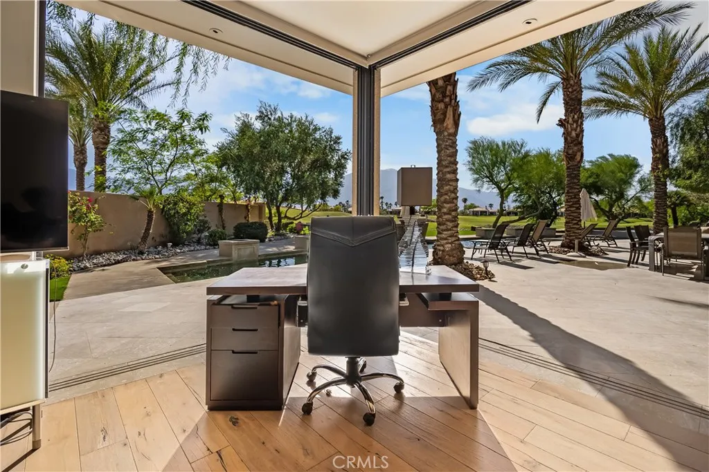 MONTHLY RATES STARTS AT $15,000 PER MONTH. SEASONAL RATES APPLY. PLEASE INQUIRE. Dream Desert Vacation at Sprawling Contemporary Estate, GREAT VALUE Summary: AWARD WINNING luxury home with sweeping mountain and golf course views Enjoy incredible sunsets and sunrises from this dream vacation home a one-of-a-kind work of art. With sweeping views of 10,000 foot high snow covered mountains and a private golf course, this 9-bedroom, 7,800-square-foot luxury home juts up from the desert landscape as the crowning jewel of this multi-million-dollar neighborhood, Westgate. Westgate is a gated neighborhood within a private country club, and has 0.5 to 1.5 acre estate homes on the golf course. Truly unique. As an internationally award winning home for its architecture. Great for large family gatherings, business events, cultural events, golf outings, celebrations, and romantic getaways. The home features light-flooded living spaces, high end finishes, patios off every room in the home, a pool and spa with a swim-up pool bar, and lush bedroom suites. With TEN massive 10 foot high pocket sliding glass doors (disappearing walls of glass), this home redefines indoor/outdoor living at its finest, bring the surrounding landscape into the home from every room in the house. Artfully designed spaces invite and delight. Modern Mansion Oasis can easily accommodate up to 24 guests. The main house includes 6 bedrooms (5 with en suite baths); the guest house features another 3 bedrooms and 2 ensuite baths (one jack-and-jill for the third bedroom), for a total of 9 comfortable sleeping areas. Youll