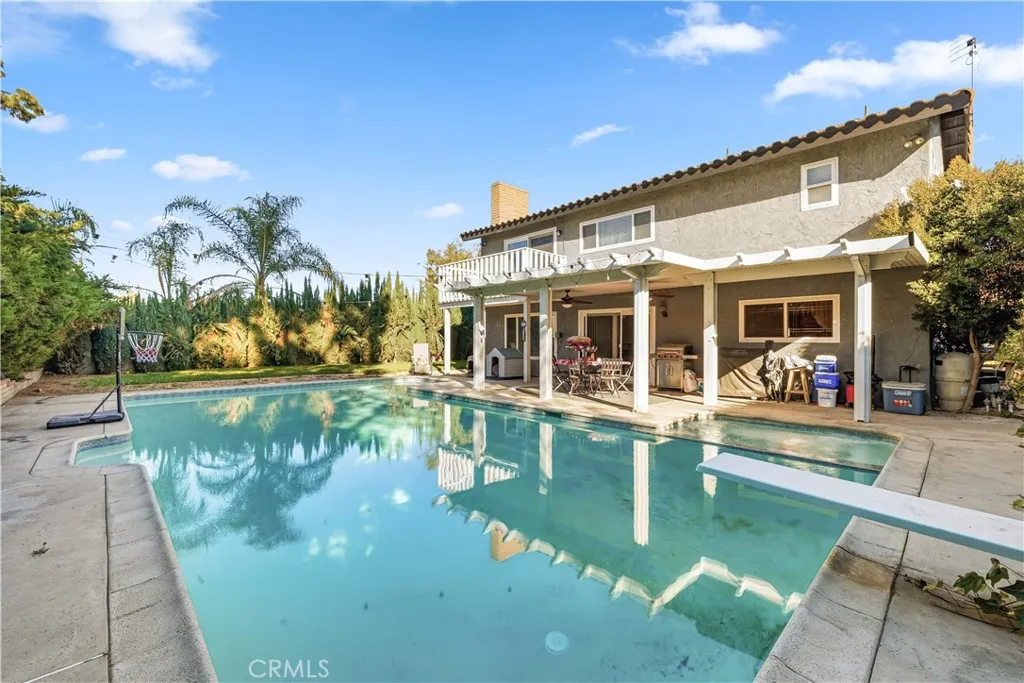Beautiful Canyon Crest Home with Large Formal living room Vaulted Ceilings, Dining room with direct access to kitchen and upgraded tile flooring, upgraded kitchen with beautiful cabinets and granite counters, Family room with fireplace, nice Bar area for entertaining, Beautiful spacious primary bedroom with sitting area and fireplace, walk in closet, sitting deck off Primary with view of city lights, Alumna Patio with two ceiling fans, nice size backyard with large in ground Pool and Spa lots of fun for the kids, 3 car garage, RV parking.