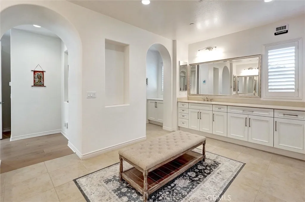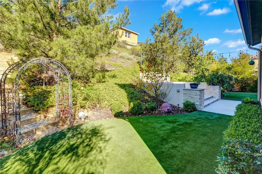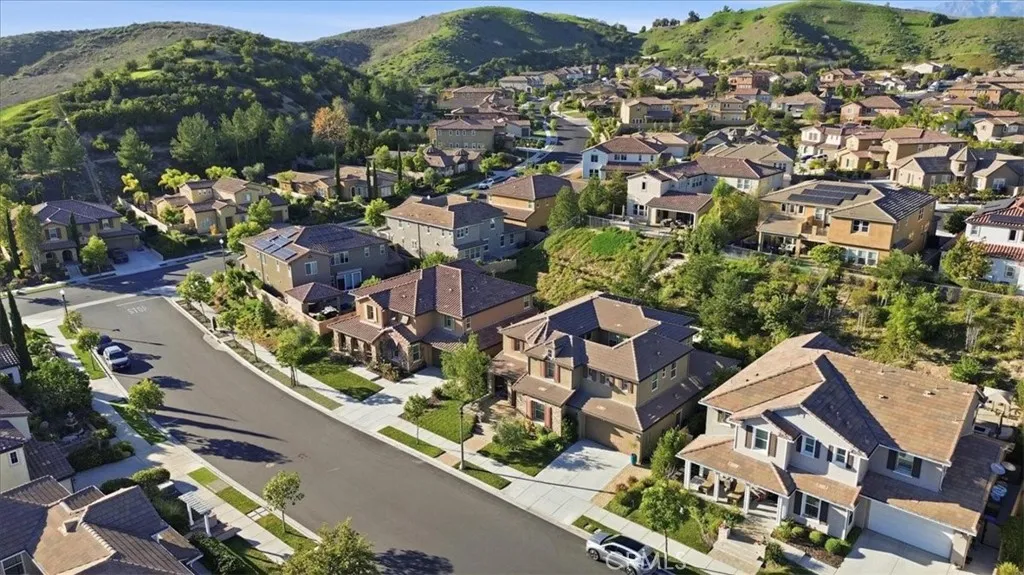 This luxurious home has been thoughtfully upgraded for modern, comfortable living. Located in the prestigious, gated community of Meridian Hills, it sits just minutes from the exquisite Moorpark Country Club. One of the most desirable floor plans in the neighborhood, this residence features a spacious light-filled atriumcomplete with a dog door suitable for small to medium pets. While four bedrooms are located upstairs, a private bedroom with its own full bath is conveniently situated on the main floor, ideal for guests, a housekeeper, or multigenerational living. Rich hardwood floors run throughout the entire home, complemented by custom shutters in most rooms. The serene Primary Suite is a true retreat, offering a spa-like bathroom with soaking tub, oversized shower with upgraded glass enclosure, dual vanities, and two spacious his and hers walk-in closets. The open-concept living area centers around a gourmet kitchen with upgraded countertops and moldings, a large island perfect for gatherings, soft-close cabinetry, and a refrigerator in butlers pantry. The home is also equipped with interior fire sprinklers for added peace of mind. Outdoor living is equally impressive. Three tranquil water features are located in the front yard, atrium, and backyard sitting area complete with a fire pit. The backyard is an entertainers dream, showcasing travertine pavers, a side paver walkways on both sides of the home with circular detail on one side, and a pathway with steps leading to an elevated custom seating area with city views. A custom awning imported from Germany shades the ma