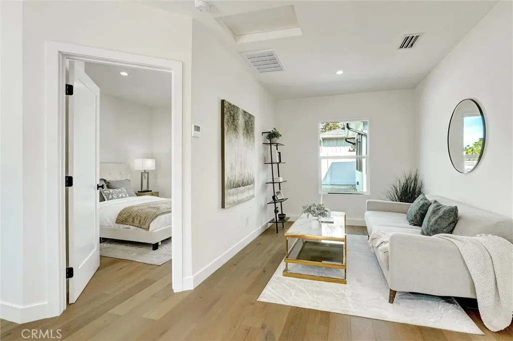 Welcome to this beautifully remodeled property offering exceptional flexibility and modern comfort. This stunning residence features a 1,790 sq ft main home with 3 spacious bedrooms and 3 full bathrooms, along with a 417 sq ft attached ADU with 1 bedroom and 1 full bathroom, totaling 2,207 sq ft of living space. The main home showcases a bright open floor plan with contemporary finishes throughout, a beautifully updated kitchen, and fully remodeled bathrooms. The thoughtfully designed layout provides comfortable living spaces ideal for both everyday living and entertaining. The primary bedroom also features a versatile flex space that can be used as a home office, sitting lounge, or additional retreat area. Each bedroom is generously sized, and the updated bathrooms feature modern fixtures and finishes. The attached ADU offers its own private entrance, making it ideal for rental income, extended family, guests, or a home office setup. Situated on a 5,922 sq ft lot, the property offers ample outdoor space with potential for entertaining, gardening, or future customization. Conveniently located near the 170 Freeway, LA Valley College, shopping centers, grocery stores, restaurants, and local amenities, providing both comfort and convenience in a prime Valley location. A rare opportunity to own a move-in-ready property with income potential in a highly desirable area.