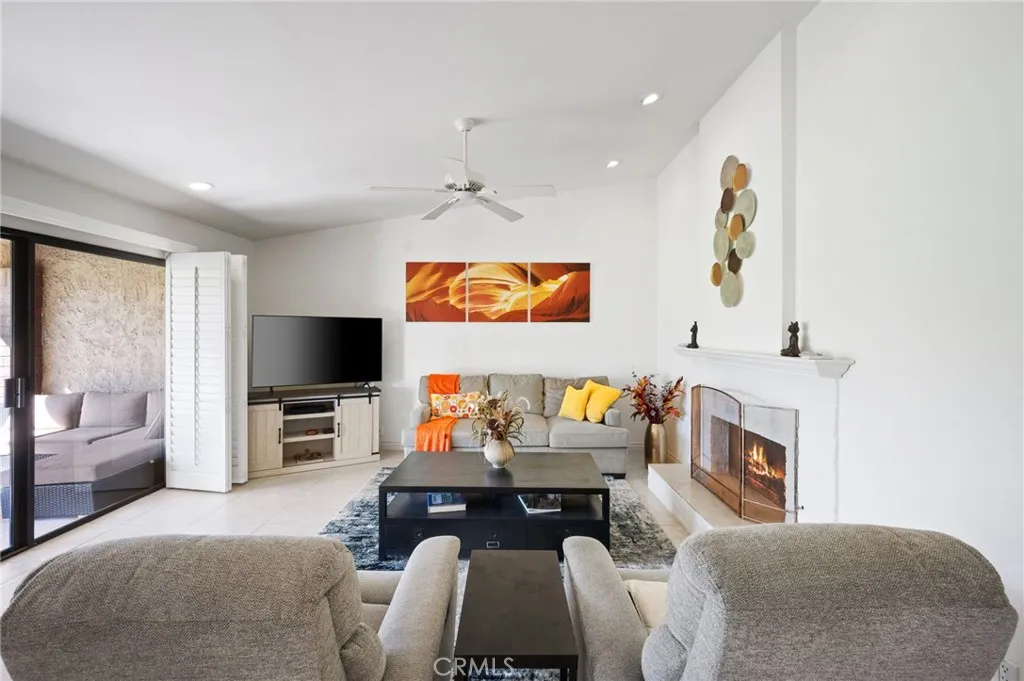 Enjoy desert living at its finest in this beautifully updated, fully furnished condo located within the prestigious, gated Chaparral Country Club in the heart of Palm Desert. This inviting residence features a gourmet kitchen filled with natural light, a vaulted living room with a striking gas fireplace, and direct access to a covered patio showcasing stunning south-facing views of the Chaparral CC golf course with a mountain backdrop in the distance. A spacious enclosed atrium with skylight offers flexible use as an office, fitness space, or entertainment room. The primary suite includes a walk-in closet and spa-like bath with dual vanities, soaking tub, glass walk-in shower, and skylight, while the guest bedroom overlooks the atrium and offers generous closet space. Additional highlights include tile flooring in main living areas, ceiling fans throughout, skylights, an indoor laundry closet, and a 2-car garage. Just steps from the community pool, this home sits amid lush, impeccably maintained grounds surrounding Chaparrals 18-hole executive golf course. Residents enjoy a vibrant social calendar, clubhouse, full-service restaurant and lounge, fitness center, tennis and pickleball courts, and 21 pools and spas. HOA dues include cable and Internet, exterior maintenance and painting, roofs, insurance (including earthquake), landscaping, streets, trash service, and security with 24-hour gated access and roving patrols. Ideally located near El Paseo shopping and dining, and world-class entertainment and sporting venues. This is luxury desert living at its best.