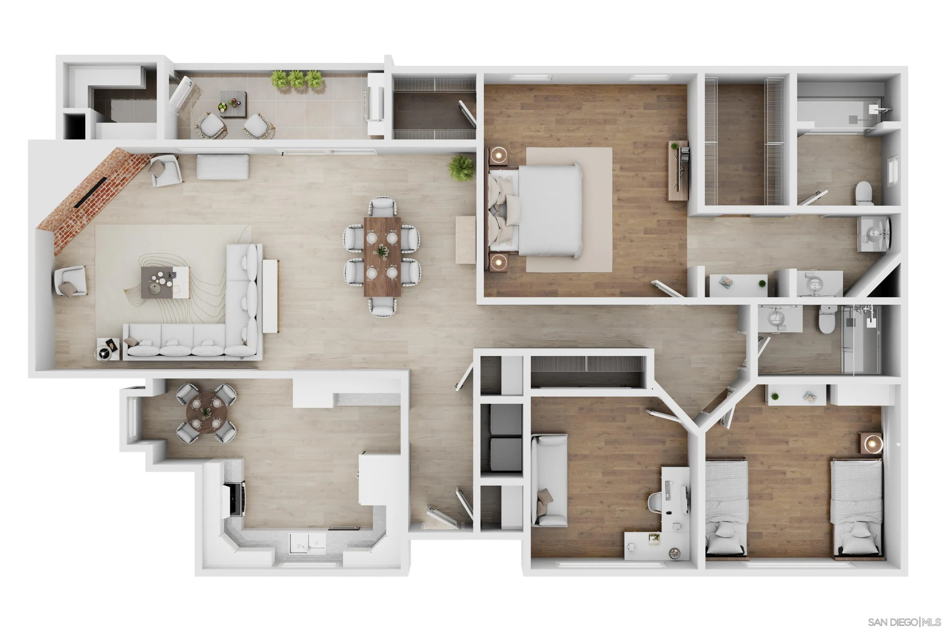 Rarely available in San Carlos, this largest-model, most desirable 3-bedroom, 2-bath corner unit in a gated community offers light-filled interiors and thoughtful upgrades throughout. The single-level ground floor home features all-new dual-pane windows, patio doors, and plantation shutters, complemented by a sleek kitchen with smart Samsung appliances and stylish LVP flooring throughout. The primary suite includes dual walk-in closets and a beautifully updated bathroom with modern vanities and a custom shower. This residence also offers a full-size in-unit washer and dryer, fireplace, central A/C, a large covered private patio with an oversized storage closet, and a generous separate garage storage unit. The home includes one garage parking spot and a second reserved space. Enjoy easy access to Cowles Mountain, Mission Trails, and Lake Murray, providing hiking, biking, and scenic outdoor recreation right in your backyard. Steps from grocery stores, coffee shops, dining, and other conveniences, with top-rated schools nearby, this exceptional condo delivers a perfect balance of comfort, location, and lifestyle.