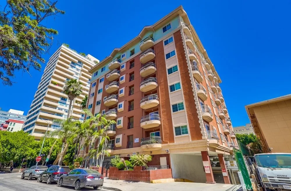 Discover the perfect blend of comfort, style, and convenience in this spacious 2-bedroom unit, ideally located in the heart of the Mid-Wilshire Financial District. Flooded with natural light from multiple windows and two balconies, this well-maintained condo offers an open floor plan with gleaming cherry wood floors, laminate and stone, crown molding, and a cozy fireplace. The dining area opens to a balcony with beautiful views, while the wide hallway leads to a versatile den/office, or third bedroom, a full guest bath, and in-unit laundry with side-by-side washer and dryer hook-ups. The primary suite features a large en-suite bath with jetted tub, while the dens sliding doors open to a second private balconyperfect for fresh air and relaxation. The home also boasts abundant storage, granite countertops, recessed lighting, and central air/heat. Set in a boutique 35-unit building with solid construction, residents enjoy modern amenities including solar panels, EV charging stations, a recreation room, gym, secure access, gated garage parking, and guest parking. All this just one block from the Wilshire corridors dining, shops, the Metro, the LINE Hotel, and more. A rare opportunity to own a serene retreat in a vibrant urban setting!
