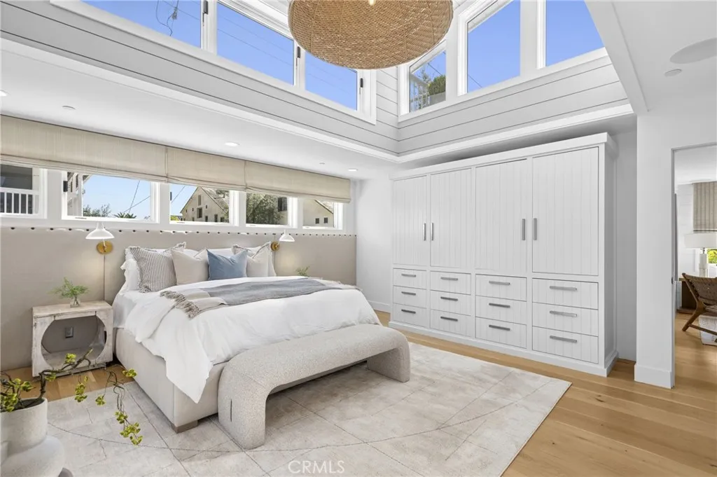 On an elevated over-sized 40' lot in a coveted location of the Village, this masterfully crafted residence was built in 2021, and stands as a bespoke creation by Design Path Studios and Darci Goodman Design, an architectural triumph that redefines coastal living. A bold vision reflects a commitment to premium materials, spatial ingenuity, and design-forward thinking that goes far beyond the conventional including a unique private yard. Interior finishes include: hardwood flooring, designer tile, curated wallpaper, shiplap detailing, and extensive built-in storage. Walls of glass surround the living room, highlighting open beam ceilings, a fireplace with custom mantel, and integrated built-ins. Architectural elements and natural light combine to create a warm yet elevated atmosphere. The exquisite kitchen showcases marble countertops, a six-burner cooktop with convection oven, wet bar, dual fridge drawers, built-in shelving, and an oversized island with breakfast bar. Disappearing glass doors open to a central courtyard, blending indoor and outdoor living with effortless elegance. The main level also features two bedrooms, one with custom dual built-in bunks, alongside a full bath, powder room, mudroom, and laundry room. Every space reflects thoughtful planning and premium material selection. The upper level includes a versatile bonus room suitable for a secondary family room, game room, or creative studio. Two additional bedrooms share a guest bath with dual sinks, soaking tub, and separate shower. The primary suite features soaring ceilings, clerestory windows, extensive s