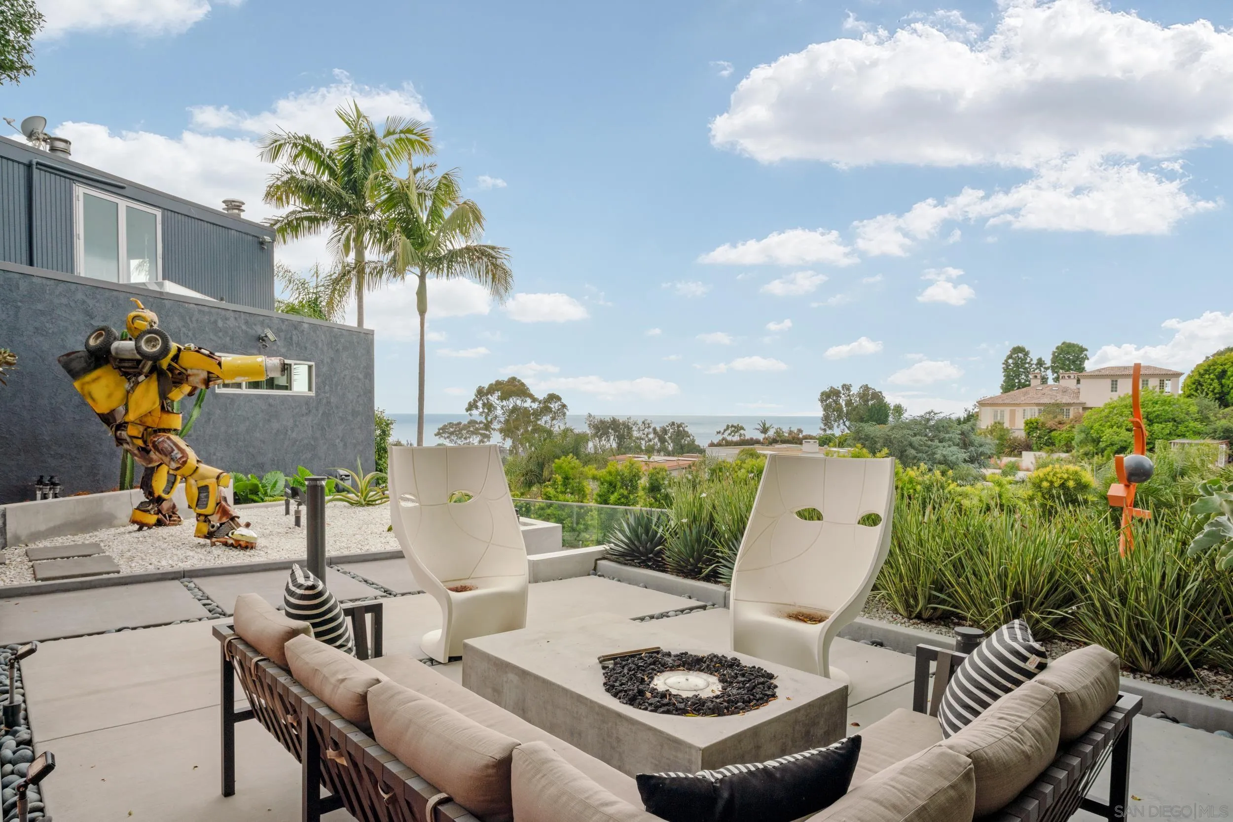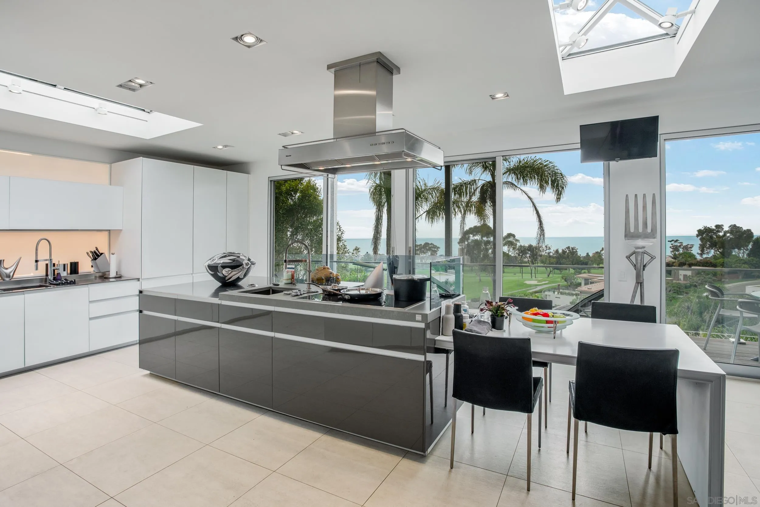 An exquisite furnished summer rental nestled in the exclusive Country Club neighborhood of La Jolla. This modern home has been completely remodeled into an elevated art sanctuary, offering over 4,500 square feet of immaculate living space. Enjoy incredible panoramic views of the Pacific Ocean and the lush fairways of the La Jolla Country Club. Situated above La Jolla Village, this property provides easy access to shopping, dining, golfing, and beautiful beaches, all just minutes away. The prestigious Country Club neighborhood is renowned for its privacy and coastal ambiance. The heart of the home is the Ernestomeda kitchen, equipped with Gaggenau ovens and a Jura espresso maker. The interior is adorned with high-end furniture from Ligne Roset, Montis, Agape, Flexform, B & B Italia, Horm, Ron Arad, and Fiam, ensuring a luxurious and comfortable stay. Spacious and beautifully designed living areas seamlessly blend art and comfort, enhanced by bright natural light and floor-to-ceiling windows. Well-appointed bedrooms with 180-degree stunning views provide restful retreats, home office, while modern, spa-like bathrooms are designed with the finest materials and fixtures. The lower level features an additional living room and a convenient kitchenette. The property sits on a large, beautifully landscaped lot offering privacy and ample space for outdoor activities. An expansive patio is perfect for entertaining, with a pool and spa. 7116 Country Club Drive offers the best of La Jolla living in an exquisite coastal retreat. Seasonal pricing changes, please inquire for details!