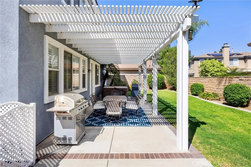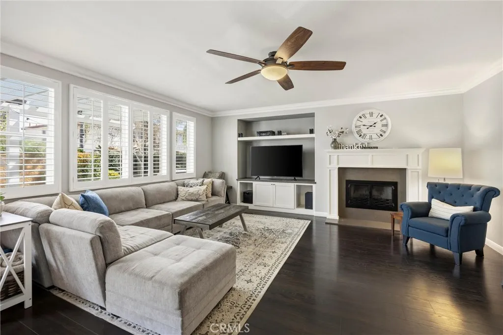Turnkey home in the highly desired Etiwanda School District featuring a $60K paid solar system-33 panels and a 6 cell battery unit. Welcome to 7133 Brisas Court in Rancho Cucamonga. This beautifully maintained home offers a warm and inviting layout, quality features, and true pride of ownership throughout. One of the standout features is the fully paid solar system (approx. $60,000 value) providing energy efficiency, reduced utility costs, and added reliability. The main level features vaulted ceilings, a spacious living and dining area, and a versatile office that can easily be converted into a bedroom with an adjacent bathroomperfect for an in-law or guest setup. The kitchen is designed for both function and style, featuring shaker-style soft-close cabinetry and drawers, quartz countertops, glass backsplash, an oversized island, double ovens, a walk-in pantry, and a butlers pantry with a built-in wine refrigerator. The kitchen opens to a large family room with built-in cabinetry, a fireplace, crown molding and plantation shutters. Upstairs includes a generous loft that works perfectly as a kids playroom, homework/study area, or additional family hangout space, giving everyone room to spread out and stay connected. Two bedrooms connected by a Jack-and-Jill bathroom with dual sinks. The primary suite features dual walk-in closets and a bathroom with separate vanities, a built-in makeup area, soaking tub, and a glass-enclosed walk-in shower. The backyard is beautifully landscaped and features a large Alumawood patio cover and an above-ground spa, perfect for relaxing or ente