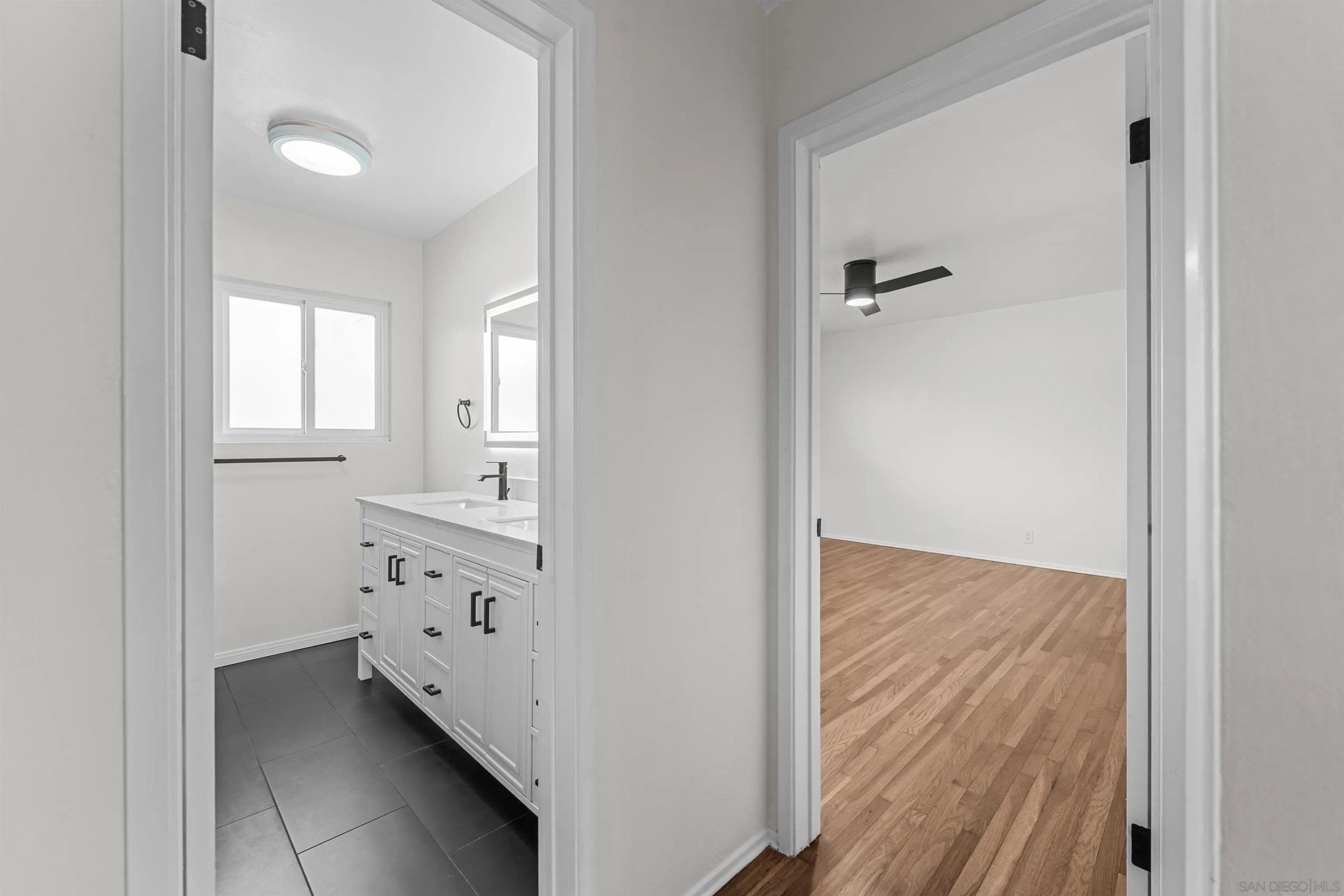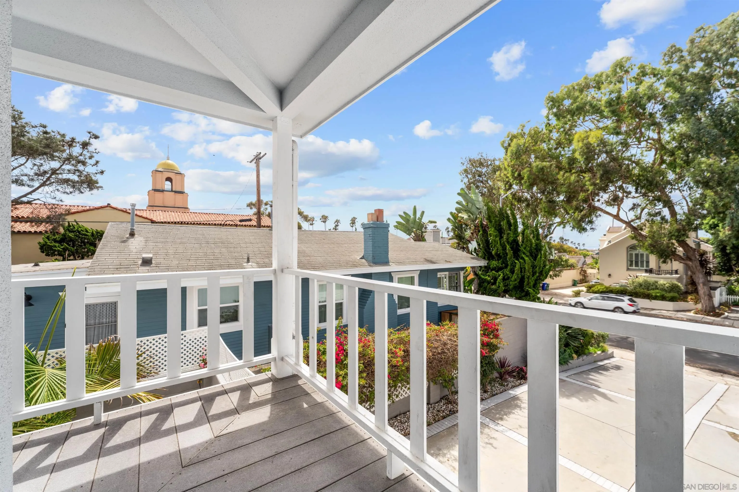 Prime location! Located just a 5-minute walk from Windansea and Marine Beach, this beautiful fully renovated 2-bedroom, 2-bathroom townhome offers a spacious 1400 square feet of comfortable living space. The property features beautiful hardwood flooring throughout, a cozy downstairs patio perfect for a BBQ, and a private balcony with ocean views from the primary bedroom. With stainless steel appliances, in-unit washer and dryer, and two parking spaces, convenience is at your fingertips. This property is also just a short stroll away from downtown La Jolla, Valley Market, and an array of restaurants and shops. The single owner occupies the back unit on the property and ensures that it is exceptionally well-maintained.