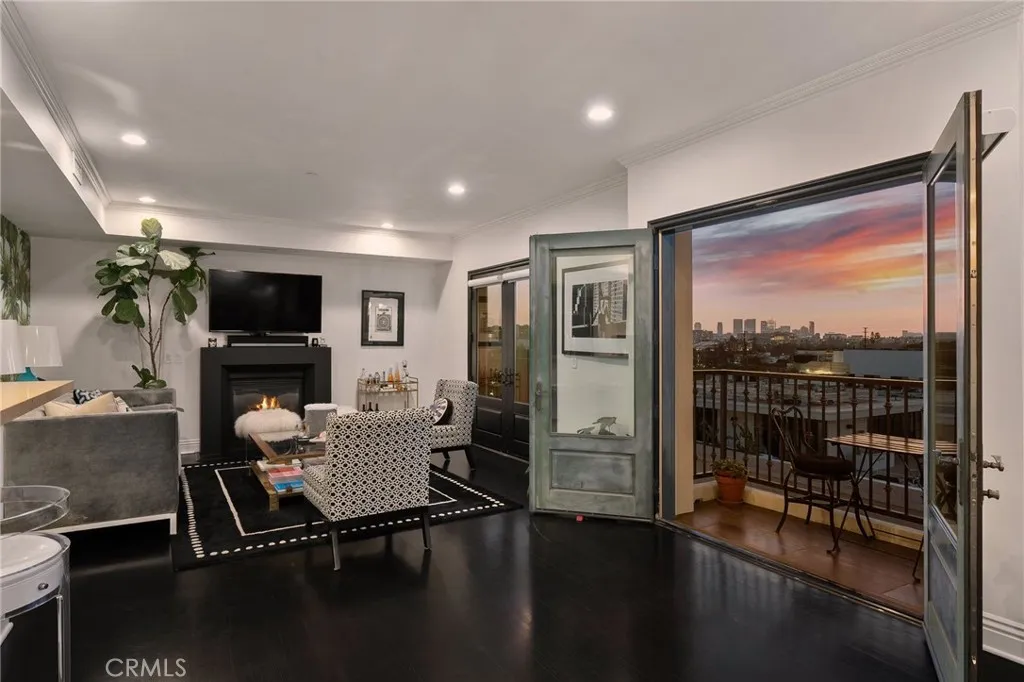 Experience the Essence of West Hollywood Living. Step into a dream PENTHOUSE retreat where style meets sophistication. Perched on the top level of the glamorous building, this light-filled, SINGLE-LEVEL, front-facing residence on the 4th floor offers unmatched privacy with only one shared wall and panoramic views. Just moments from the allure of Melrose Place, youll find yourself surrounded by high-fashion boutiques, the vibrant Sunday Farmers Market, quaint cafes and the city's most iconic destinations. The building itself radiates classic Hollywood charm, blending timeless elegance with modern safety and serenity. Inside, a spacious living area welcomes you with walls of light streaming through French doors, opening to balconies showcasing breathtaking vistas of sparkling city lights and the iconic Hollywood Hillsa view as enchanting as the city it embraces. The kitchen is a true chefs delight, boasting top-of-the-line appliances that combine both form, function with a view of the city. A dedicated dining area perfectly complements the culinary space, setting the stage for unforgettable gatherings. When the celebrations wind down, retreat to the expansive master bedroom, a sanctuary of comfort and calm, complete with a luxurious ensuite bathroom designed for ultimate relaxation. Two additional bedrooms provide ample room for family or guests, each offering its own blend of warmth and privacy. For added convenience, this residence features an individual laundry room with a brand-new washer and dryeradding a touch of practicality to this luxurious home. Convenience meets ex