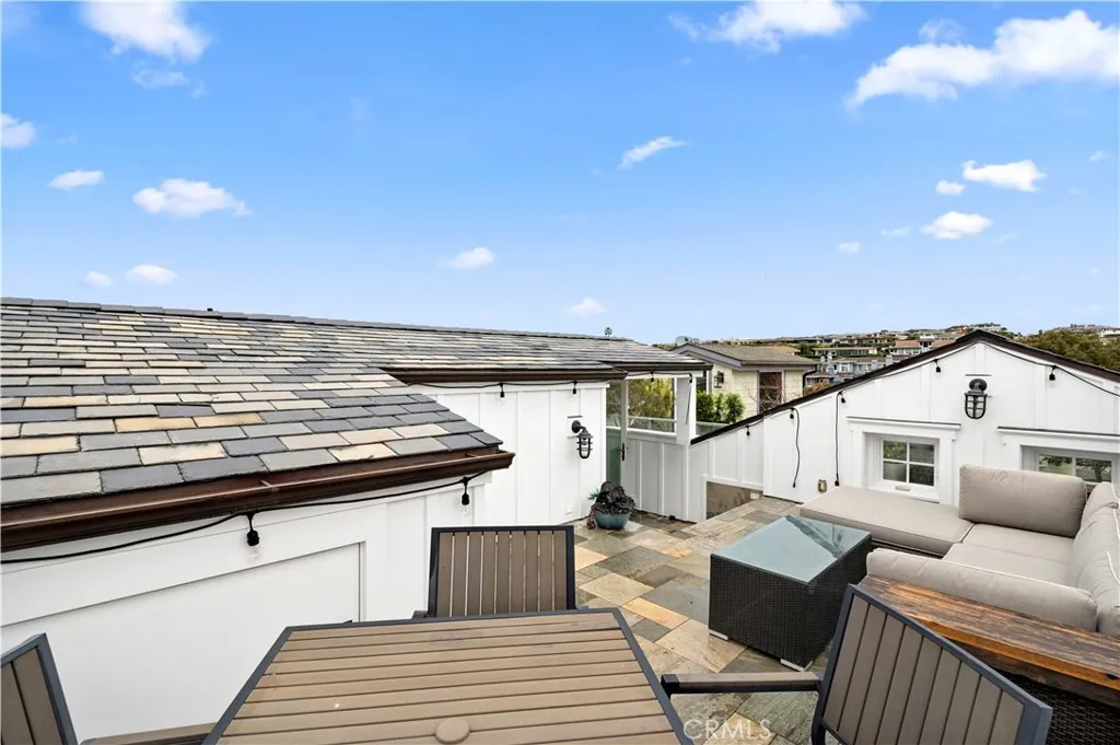 Fully furnished and truly turnkey, this exceptional Village residence is located in one of the areas most coveted pockets, with an elevated, tranquil setting along the prized 700 block where ocean views sweep from the upper level. Every detail has been curated with intention, showcasing exquisite design and superior construction. Wide-plank distressed wood floors, elegant wainscoting, soaring two-story ceilings, designer hardware, statement lighting, and an advanced technology system combine with crisp white cabinetry, paneled ceilings, and expansive windows to create a bright, inviting ambiance ideal for sophisticated coastal living. The main level features a gourmet kitchen with marble countertops, designer appliances, and abundant custom cabinetry, flowing seamlessly into a generous living area where disappearing panel doors open to a covered loggia with a cozy fireplace and ample seating, perfect for year-round enjoyment. The primary suite offers soaring ceilings and a designer bath with a soaking tub, walk-in shower, dual-sink vanity, and custom walk-in closet, creating a private retreat of unparalleled comfort. Upstairs, a spacious secondary en-suite bedroom provides a private bath with views and direct access to an expansive rooftop deck, where sweeping ocean vistas stretch to Catalina Island and wrap around to the golf course. Live the Corona del Mar Lifestyle with proximity to famed beaches, blue-ribbon schools, fine dining and exquisite shopping.