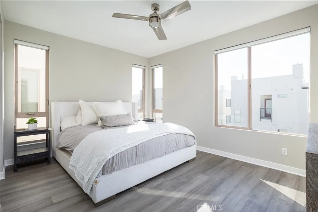 Experience elevated coastal living in this light-filled, multi-level residence that blends modern design with effortless beachside appeal. Thoughtfully updated throughout, the home offers a clean, contemporary aesthetic paired with a highly functional layout designed for everyday living and entertaining alike. The main living level features an open-concept floor plan where the living room flows seamlessly to a private balcony, inviting ocean breezes and abundant natural light. A conveniently located powder room serves guests, while the adjacent kitchen and dining area anchor the space with both style and practicality. The gourmet kitchen is outfitted with Italian Bertazzoni appliances and sleek quartz countertops, making it equally suited for casual meals and elevated entertaining. Three ensuite bedrooms provide comfort and privacy, each offering its own serene retreat. The lower-level bedroom opens directly to a private patio, creating an ideal indoor-outdoor escape. At the top of the home, the rooftop deck delivers a true showpiece complete with an outdoor kitchen and sweeping panoramic views, perfect for hosting gatherings or unwinding beneath the evening sky. Ideally located near freeways, beaches, and a curated selection of coffee shops and restaurants, this home offers the best of beach city living with convenience, style, and flexibility.