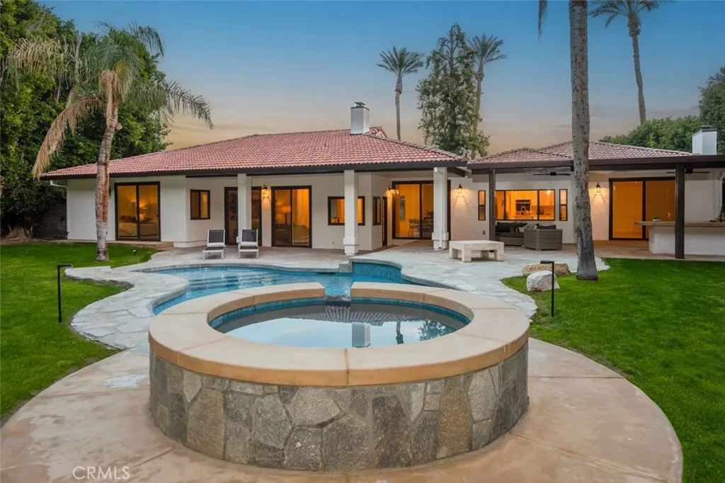 Rancho Mirage living, elevated. Set across a rare half-acre, this residence blends timeless materials, grand interior scale, and a resort-caliber backyard designed for gathering and retreat. With mature palms, long sightlines, and a setting that feels expansive from the moment you arrive, the property offers a sense of space and privacy thats increasingly hard to find in the desert. The home is designed to live outward, grounded in openness, proportion, and ease. Inside, the layout unfolds as a true retreat. Massive bedrooms are thoughtfully placed throughout the single-level floorplan, each one feeling more like a private suite than a standard room. Travertine floors run throughout, giving the interiors a natural warmth and timeless simplicity. An updated kitchen sits at the heart of the home, refined yet functional, designed to support both everyday living and effortless entertaining. The architecture remains clean and composed, with tall ceilings, soft transitions, and an openness that allows light to move through the home from morning into evening. The main living areas connect effortlessly outdoors, with wide glass doors opening onto an oversized backyard built for desert living. A resort-style pool anchors the setting, framed by stone hardscape and lush greenery, while the outdoor kitchen creates a natural place to gather, from afternoons in the sun to evenings under the patio lights. What makes the residence even more compelling is the level of care behind the scenes. Major upgrades have already been completed, including a new HVAC system, new water heater, updated p