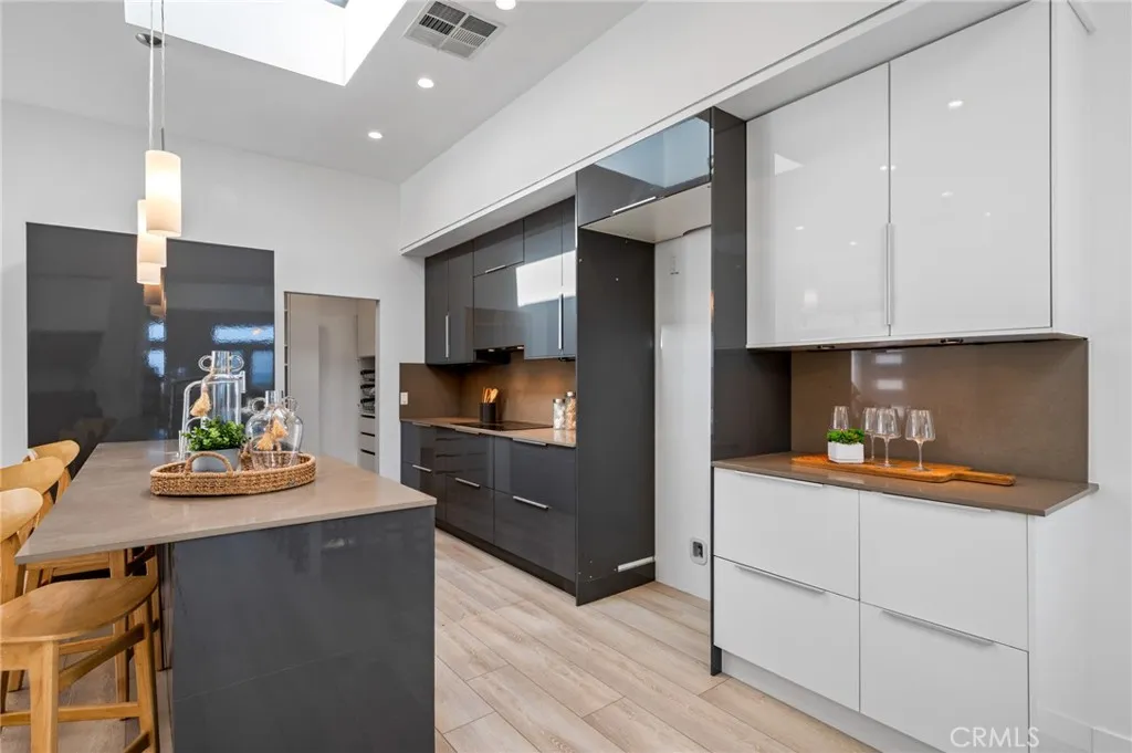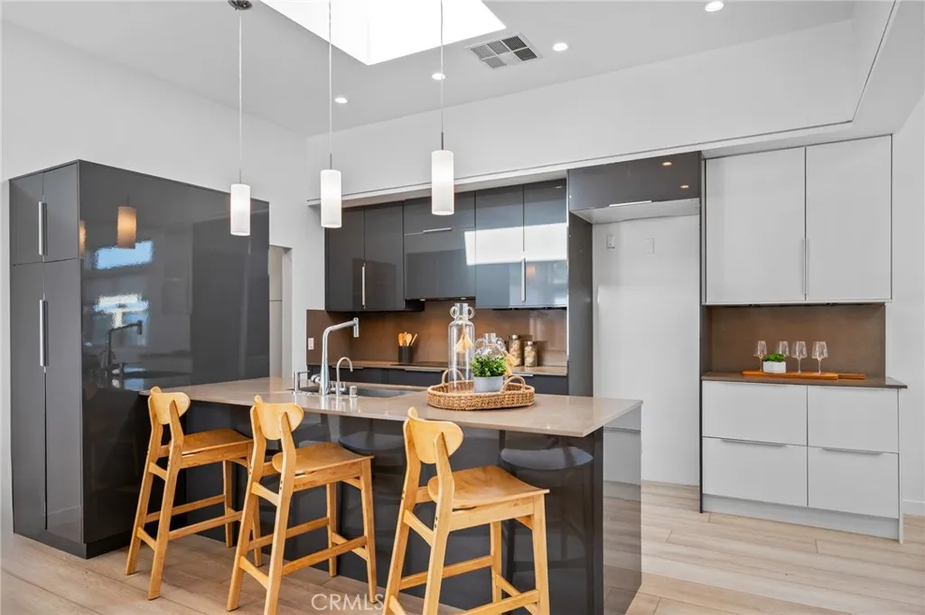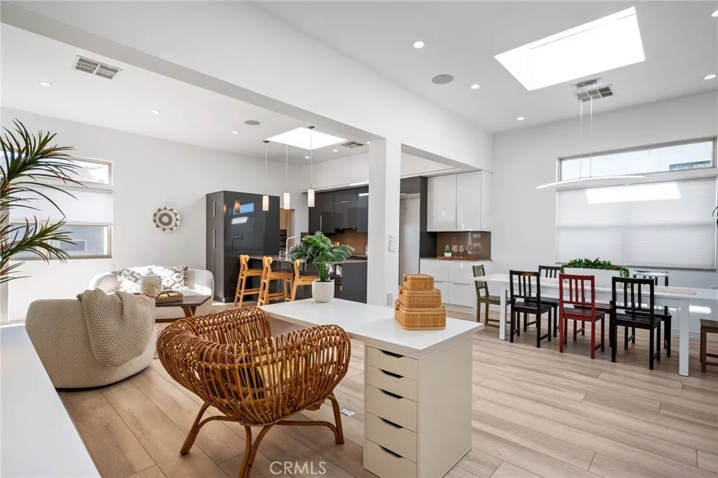 Looking for a luxury income property with significant value-add potential? This 3,070 SF ocean-view duplex, zoned R2 and NOT subject to LA City Rent Control may be that rare unicorn that offers flexibility and tremendous MULTIPLE upsides. Currently configured as a five-bedroom, five-bath property, there is a possibility to add one bedroom to each unit within the EXISTING footprint and becoming potentially SEVEN bedrooms! The upstairs/owners unit has two bedrooms, two baths, 10+ foot ceilings, skylights in almost every room, and offers a deck spanning across the front. It also has a large rooftop deck with panoramic ocean views, including Catalina on clear days and the Korean Friendship Bell. Spanning over 1,500 square feet, there is room to add a second primary bedroom with ocean views and a massive walk-in closet. This unit also features a gorgeous gourmet kitchen, a walk-in pantry that would be the envy of any home chef, a tankless water heater, air conditioning, soundproofing between units, and additional deck space in the back. The SECOND UNIT offers three bedrooms and two baths, is over 1,500 square feet and has potential to add a fourth bedroom in the large living area adjacent to the dining room. There is also a front lovely private patio area. Additionally, there is a large separate storage unit may be dedicated to either unit, creating an additional income. The property also features three washer/dryer hookups, one in each unit and one located in the garage. Flexible income opportunities extend beyond the units, including five off-street parking that may accommodat