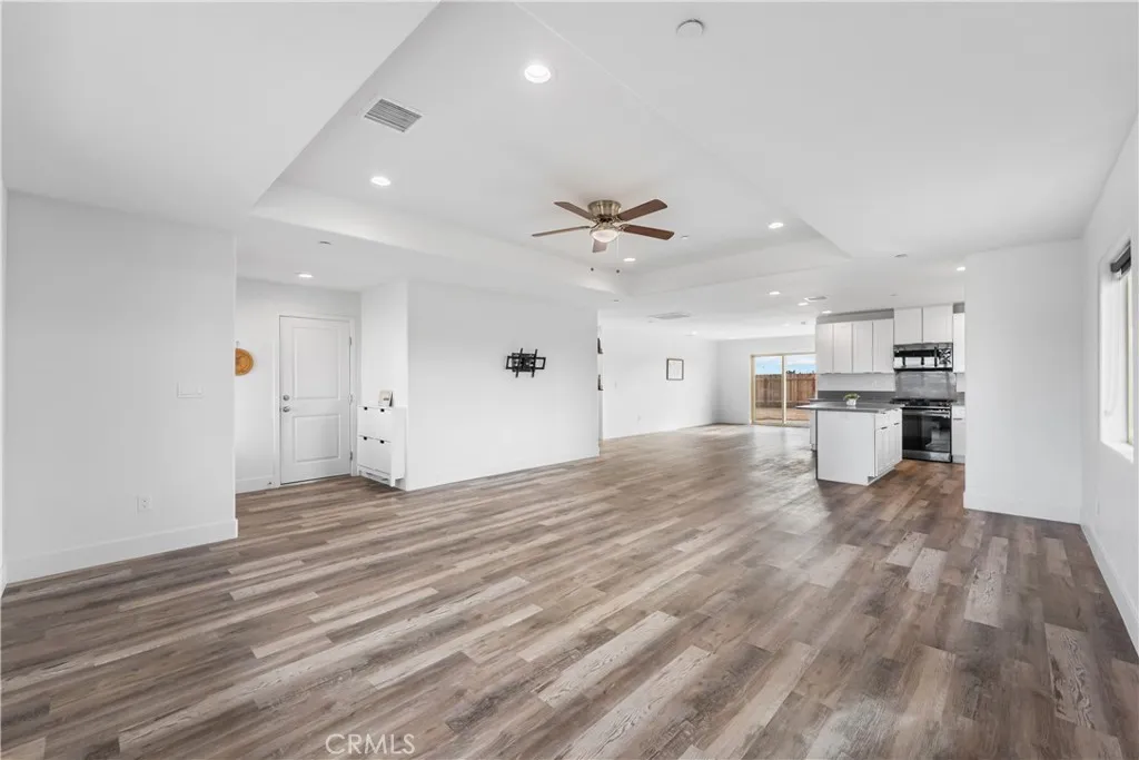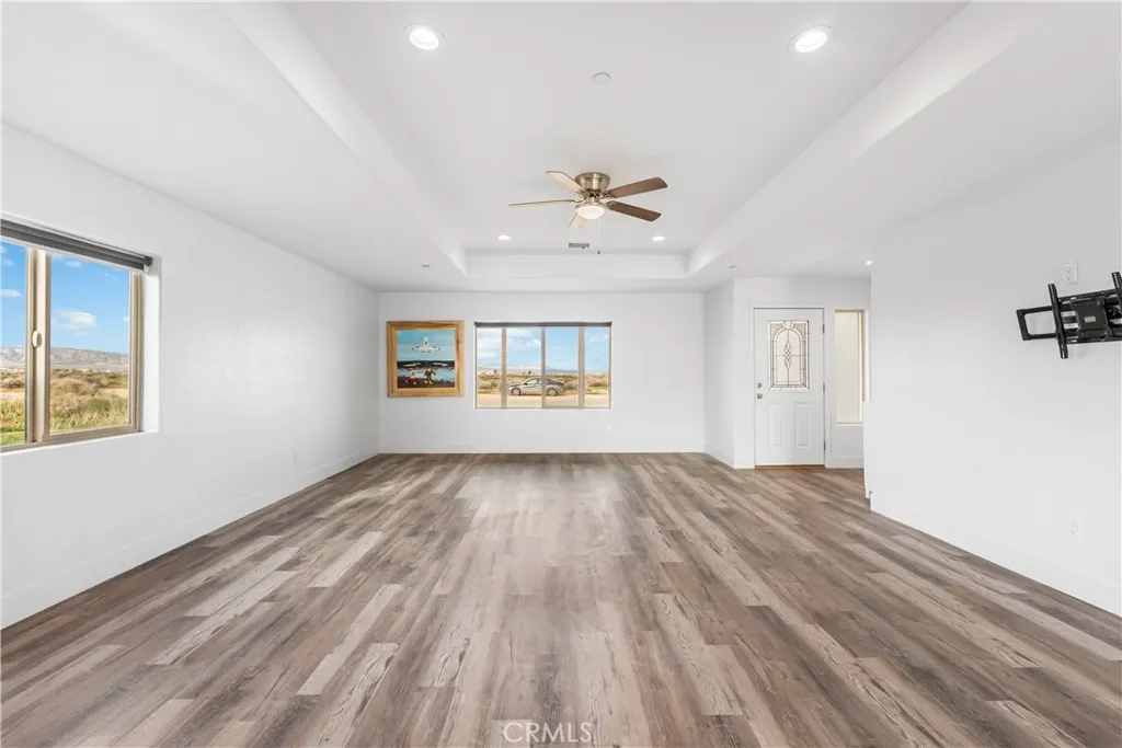 Located in the heart of California City, this spacious 4-bedroom, 2-bathroom home offers an unmatched view of the surrounding mountains and the flexibility youve been looking for! With RV access, theres plenty of room for your desert toys, outdoor gear, or additional vehicles. Inside, youre greeted by a large living room with soaring ceilings that create a bright and open feel. The kitchen is a showstopper, featuring sparkling gray quartz countertops, clean white cabinetry, and ample space for all your favorite appliances and gadgets. Whether you're a home chef or just love to entertain, this kitchen checks all the boxes. The adjacent dining area is generously sized to accommodate a full table, but versatile enough to be used as a second living area, office, or playroom. The primary suite offers a peaceful retreat with a private en-suite bathroom complete with dual sinks and great storage. Throughout the home, youll find beautiful wood grain vinyl plank flooring that combines warmth and durability. Enjoy peaceful desert sunsets, open skies, and easy access to local schools, shopping, and major highways. With its combination of space, views, and function, this home is ready for your next chapter!