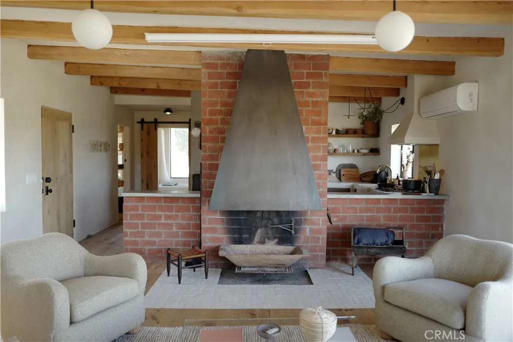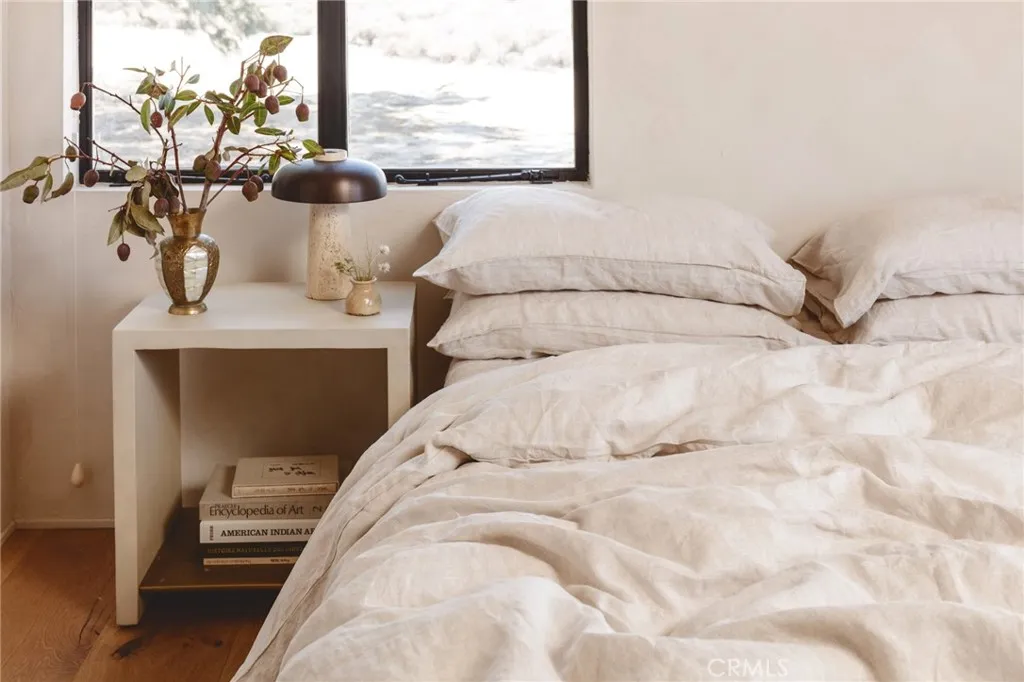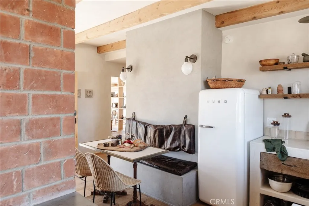 Arro Dunes, created by Studio Marrant Interiors, is a renovated 1957 homestead set on 10 acres in Desert Heights with lush mesquite dunes and trees surrounding the property, operating as an active, successful short-term rental that generated $75,000 gross income in 2025 (buyer to verify). The 2-bedroom, 1-bath home blends organic materials, wabi-sabi influence, and minimalist style with carefully curated antiques, custom-built finishes, and modern comforts. Dual bi-fold French doors open to the desert landscape and sweeping 360-degree mountain views. Featured in Cond Nast Traveler, Coveteur and The Makers book by Bed Threads, the home offers a distinctive desert experience with thoughtful design and a strong visual identity. The spacious bedroom includes a sitting area/tea room, while the original brick fireplace with steel hood remains a standout architectural feature in the living room. Outdoor amenities include a wood-burning hot tub, cowboy pool, fire pit, outdoor dining area, bocce ball court, and horseshoe pit. Additional features include A/C and heat in every room, WiFi, projector entertainment system, and a thoughtfully outfitted kitchen with premium appliances. Turn key with designer furnishings excluding some personal items. Conveniently located near the eastern entrance of Joshua Tree National Park and just minutes from downtown Twentynine Palms, with local dining, shopping, and the Sunday farmers market nearby. Ideal as a second home, short-term rental investment, or full-time primary residence.