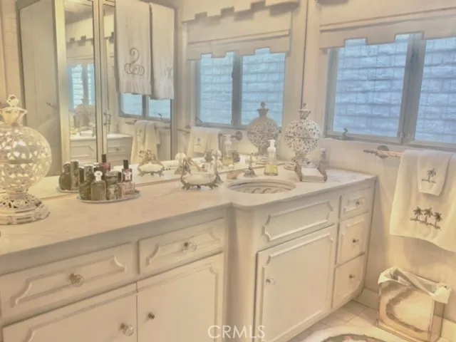 WELCOME HOME to this spectacular one of kind custom built property located overlooking Recreation Park golf course. This very unique home is a well designed combination of Mid Century Modern and traditional elegance and very upgraded finishes including terrazo flooring, marble countertops, numerous finished white columns, two marble fireplaces, gold plated door knobs, stainless appliances in kitchen, custom wall finishes pluse solar panels. Over 5000 s.f. of spacious living and entertainment areas including an expansive living room with marble fireplace, large great room with marble fireplace & bar area, formal dining room, separate office, well appointed kitchen with center island and numerous cabinets plus built in desk and a first level bedroom suite. All built around access and views to the large patio area with pool and entertainment room with wine storage, built brick barbeque and dining area. Up the grand curved staircase are 3 bedrooms including a very spacious primary suite with attached large balconey that looks out to the golf course, a primary suite bathroom finished in terrazo and marble with large sunken tub and two separate vanities. Lots of closets including a large walk in cedar lined closet. Down the hall is another bedroom suite with golf course views. closets and bathroom with an oversized round terrazo shower. The middle bedroom has a wall of windows with golf course views and balcony. A third bathroom boasts walk-in closets and a round terrazo sunken bathtub plus a large vanity sink area all finished in white marble. There is a 5th bedroom/bathroom stu