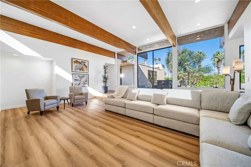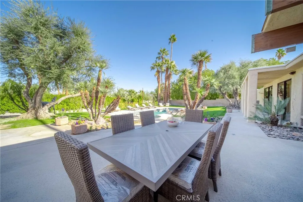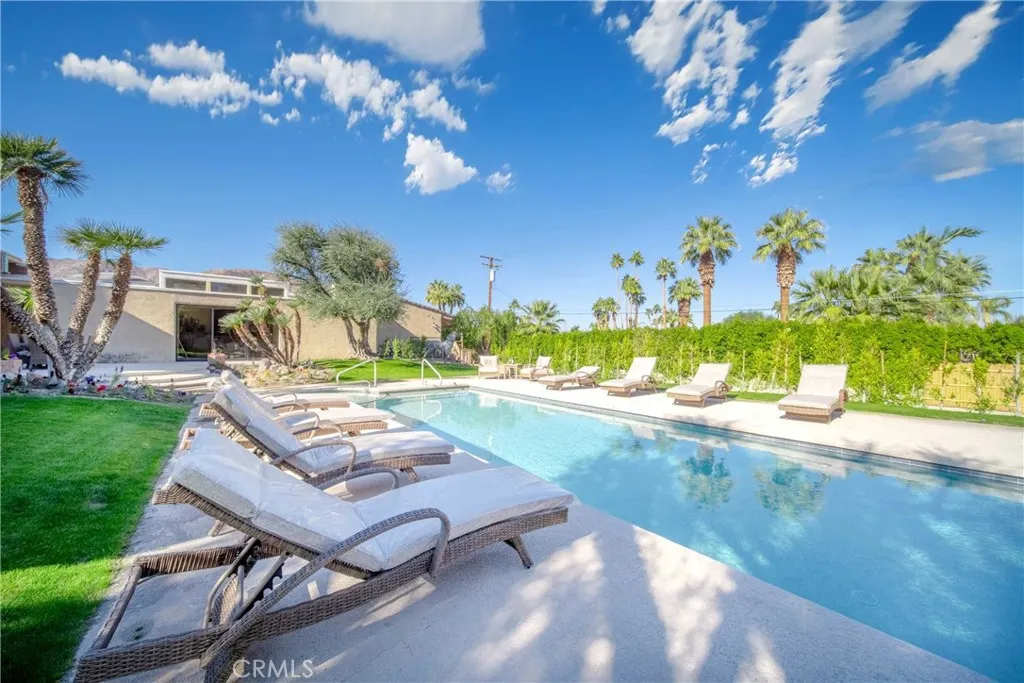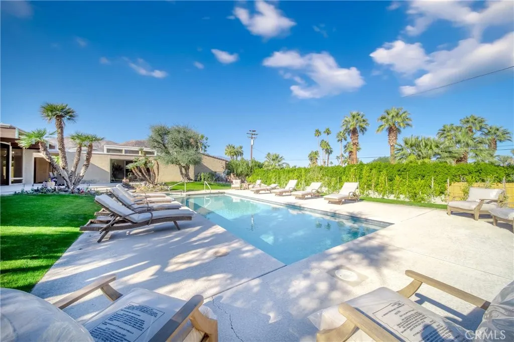 (Pricing reflects the lowest rates of the year; rates may be higher during peak season and other months.) Nestled on a spacious 0.5-acre lot, Casa Ironwood is a 3,224 square foot Mid-Century Modern masterpiece that embodies the spirit of Palm Springs. This stunning residence showcases an open floor plan, abundant natural light, and a seamless flow between indoor and outdoor living spaces. The interior features warm hardwood floors that extend throughout, creating a sense of continuity and warmth. The living room is a true showstopper, boasting large windows that frame breathtaking views of the pool and surrounding desert landscape. A cozy fireplace invites you to relax and unwind on cool evenings, while plush seating arrangements provide ample space for socializing. The modern kitchen is a chef's dream, equipped with high-end stainless steel appliances, sleek granite countertops, and a spacious island with seating for casual dining. Adjacent to the kitchen, you'll find a formal dining area with a large rustic wooden table, perfect for hosting gatherings and enjoying memorable meals with family and friends. The property features three bedrooms, each with comfortable king size beds and stylish decor. The master suite, with its own private access to the pool area, offers a luxurious retreat with an en-suite bathroom featuring dual vanities and a walk-in shower. The heart of Casa Ironwood is undoubtedly the outdoor oasis. The sparkling pool and soothing spa beckon you to relax and unwind under the California sun. Lounge chairs provide ample space for sunbathing, while the surro