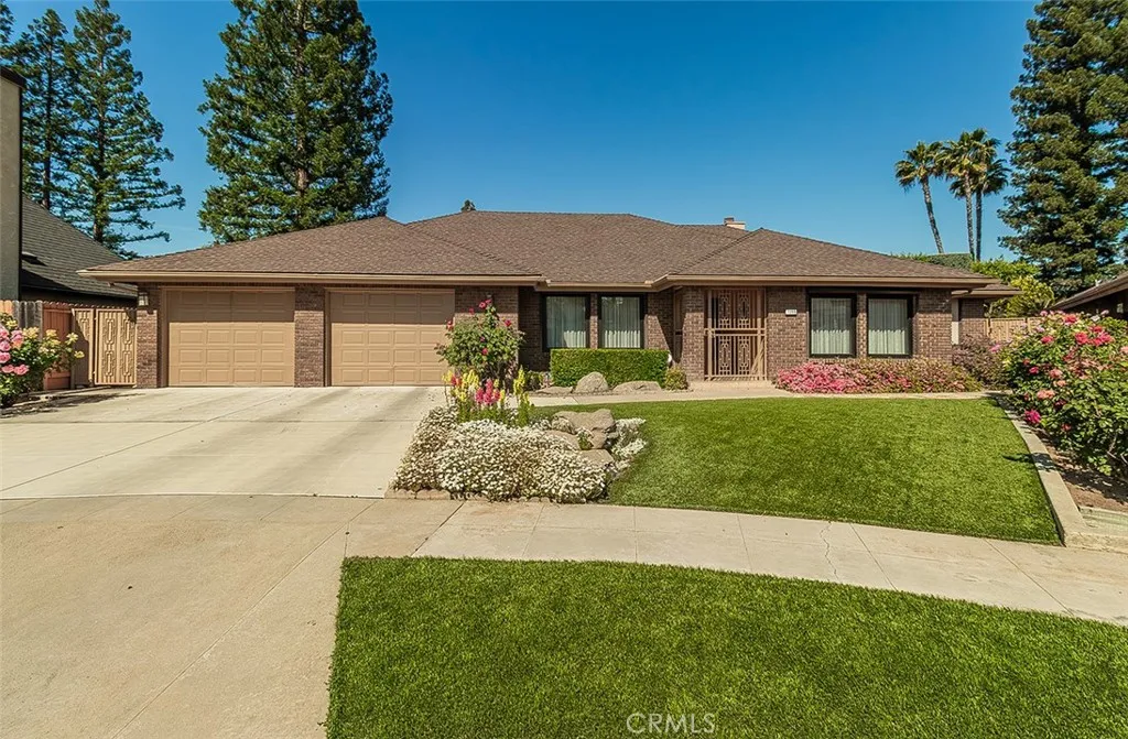 This fabulous, immaculate, Northwest Fresno 4 bedrooms and 3 bathrooms Vintage like custom home exemplifies Old World Charm and European designs throughout. Enjoy this outstanding floor plan with a separate living room, dining room and family room with a lovely gas jet fireplace. The home flows very nicely and has lots of light with loads of designer style windows with their parts made in Europe and assembled in the USA. They are very special as they open from the side and the top. Many of the window coverings are electric like shades/rolling shutters. The wallpaper is from Germany and lends itself so well to the overall feel of this home. The well-appointed kitchen is conveniently located and has an open feeling to the large eating area and a breakfast bar too. The electric cooktop and builtin appliances add to your cooking enjoyment plus a large pantry and loads of storage too. (CD player equipment included) The primary bedroom and bathroom with its own skylight are well designed for privacy and relaxation with a nice walk in closet and deluxe bathroom and double sinks with its own beautifully tiled separate shower and tub. The additional 2 bedrooms on the north wing are nice size with an extra hall bathroom nearby. The large private bedroom on the south side of the home has outstanding builtin bookshelves and can be used as an office etc. In addition, the bathroom and large utility room are nearby. The home includes its own builtin vacuum system. The front and rear yards are easy care and show pride of ownership with artificial turf and beautiful flowers now in bloom. Th