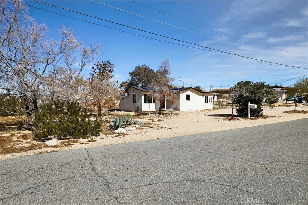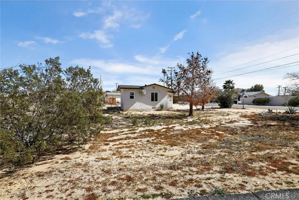 Charming 2-bedroom, 1-bathroom home situated on an approximately 16,000+ sq ft lot. Updated in 2024, the property features new electrical, roof, stucco, windows, doors, fixtures, appliances, mini-split system, flooring, and fresh interior and exterior paint. The home offers abundant natural light and a functional layout. The spacious lot includes a circular driveway and provides ample room for potential expansion or additional improvements (buyer to verify). Conveniently located less than 10 minutes from the entrance to Joshua Tree National Park and close to local amenities and outdoor recreation. Schedule your private showing today.