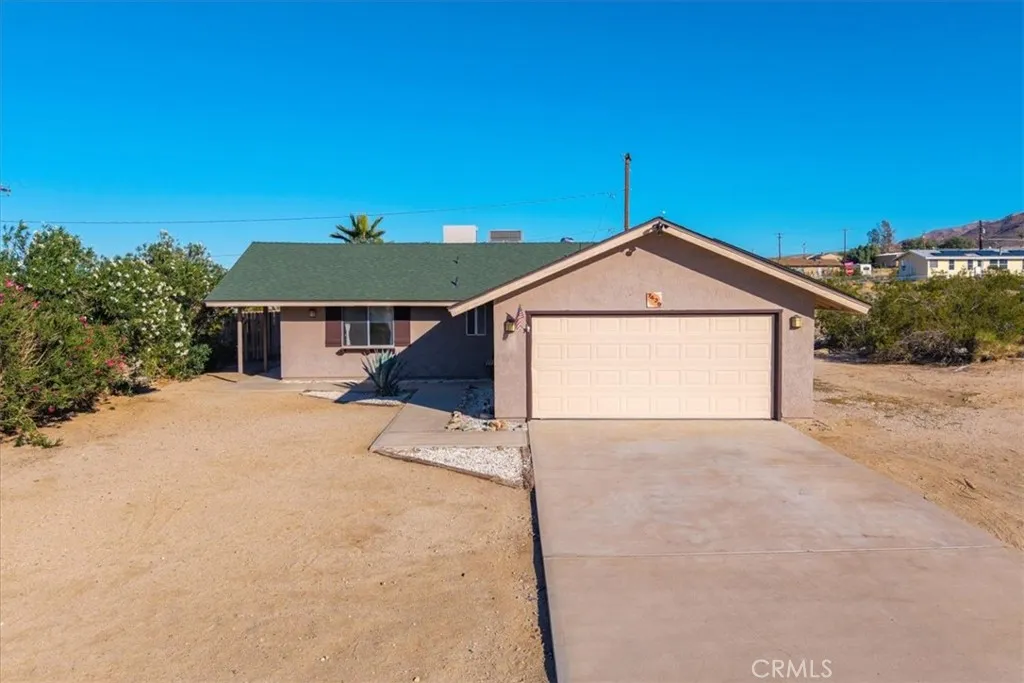 **MOTIVATED SELLER / LOW ASSUMABLE VA INTEREST RATE!** Welcome to 7429 Maude Adams Ave, a beautifully maintained 3 bedroom 2 bath home located in the quiet and desirable Hanson Track neighborhood of 29 Palms (just MINUTES from the Joshua Tree National Park East Entrance)! With close proximity to downtown, schools, eateries, the Tortoise Rock Casino, Marine Corps Base and more, you'll love the convenience and ease this home's prime location offers. As you step inside you'll notice the lovely open-concept living space complete with earth-toned tile flooring, recessed lighting and large east facing windows that let in an abundance of natural light. The chefs-kitchen is anchored with an oversized island with tile countertops, amble cabinet & counter space, custom cabinetry and stainless steel appliances. This home's neutral color palette makes it extremely versatile for any decor and style. Directly adjacent to the kitchen youll find the formal dining area, additional cabinetry and the access door that leads to the backyard and pool area. The primary bedroom adorns carpeted flooring, a ceiling fan and a sliding glass door for private patio access while the ensuite bathroom includes a single sink vanity with generous counter space & a pocket door that separates the lavatory & walk-in shower. The two additional bedrooms also include neutral carpeting, ceiling fans and share the aesthetically pleasing hall bathroom - complete with a single sink vanity and a shower/tub combo. Not to mention, this home has dual cooling (AC & Swamp), an attached 2 car garage and leased solar panels t