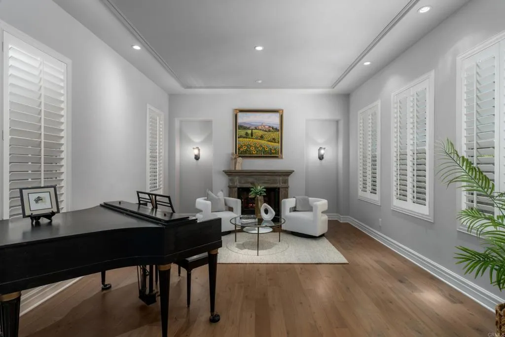 An exceptional residence in the prestigious gated community of Mirasol, just moments from the charm and amenities of Santaluz. Set on over half an acre, this over 5,000 sq ft estate blends timeless design with modern upgrades, creating a private retreat designed for elevated everyday living and seamless entertaining. At the heart of the home is a beautifully remodeled open-concept kitchen and family room, where bi-folding glass doors open to a spectacular covered outdoor living areacomplete with fireplace, built-in BBQ, media, ceiling-mounted heaters, and multiple seating and dining spaces for year-round enjoyment. The chefs kitchen features a massive center island, high-end appliances, and double ovens. Upstairs, the primary suite is a tranquil escape with a spa-style steam shower, soaking tub, and a spacious walk-in closet. Outdoor amenities include a solar-heated saltwater pool and spa, lush mature landscaping, multiple entertaining zones, and a custom putting green by Back Nine Greens. The attached guest casita with a private entrance offers flexibility for long-term guests or multigenerational living. Additional features include an owned solar system, whole-home water filtration and softening, a two-car garage plus separate single-car garage, and location within the award-winning Poway Unified School District.