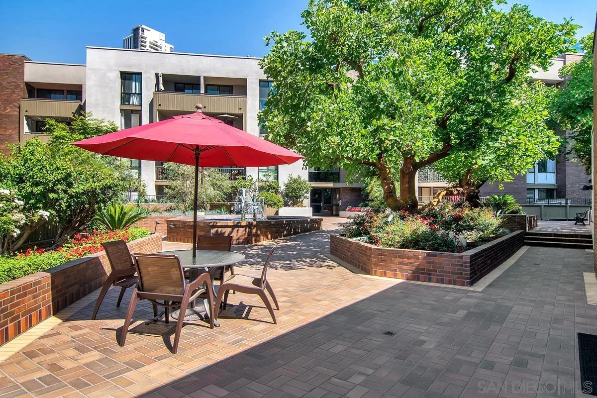 SPACIOUS & SPARKLING Marina District top-floor end unit! This rare 3bd/2ba residence with modern upgrades combines comfort with urban living. Open concept floor plan showcases gleaming hardwood floors, new designer carpet & recessed lighting. New dual pane windows are enhanced by elegant plantation shutters. The exquisite chef's kitchen features sleek granite counters, stainless appliances & an ideal layout for entertaining. Enjoy whole home convenience with new A/C, washer/dryer, fireplace & beautifully remodeled spa-like bathrooms. Both showers have a toiletry niche and the primary shower contains a bench for ultimate relaxation. This top floor residence is conveniently located to the elevator and includes 2 assigned pkg spaces plus access to 36 guest spots and EV hookups-a luxury for a downtown condo building. Adjacent to Pantoja Park, nearby transit and walk score of 96! The complex is a pet friendly, quiet oasis with lushly landscaped outdoor courtyards and fountains. 24 hour on-site security personnel and maintenance staff plus a front desk concierge service.