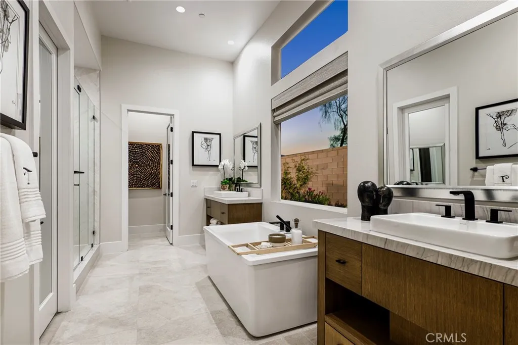 Welcome to Stella at University Park, a new Toll Brothers community located in Palm Desert. Homesite 52 is a new construction Belltrix floorplan which features 3 bedrooms with 3 bathrooms and is 2,496 sq. ft with a 2-car garage. Upon entering the home, you will take notice of the 14' ceiling and convenient flex room and wet bar. The kitchen features beautiful Sabbia Shaker cabinets, plenty of counter space and natural light with a central island and stainless steel JennAir appliances. The primary bedroom is in the rear of the home with an ensuite bath featuring dual vanities, soaking tub, and 2 large walk-in closets. The secondary bedrooms are in the front of the home with one bedroom featuring a private ensuite bathroom. Highlights include a central great room with fireplace, separate casual dining area, a walk-in pantry, and a laundry room with additional access from the primary closet. The rear yard features a covered patio. University Park includes a new community center with pools, spa, fitness center, pickleball bocce ball and is close to world class restaurants and shopping. Photos are of the model home. This home is under construction and exterior color schemes may vary.