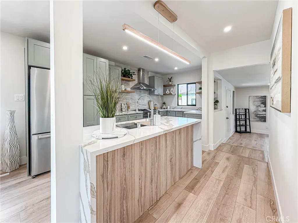 Completely remodeled rental, available for IMMEDIATE OCCUPANCY! Amenities include: single-story, open floorplan; 3BR + 2BA; over 1800 SQF; living room w/fireplace; dining area; upgraded kitchen w/center island, granite countertops countertops + stainless steel appliances (refrigerator, stove/oven + dishwasher included); family room w/separate entrance to backyard; primary suite w/full bath featuring double sinks; wood laminate flooring throughout; central HVAC; recessed lighting + dual pane windows; inside laundry w/stacked washer + dryer hook-ups; backyard w/pool + covered patio; citrus tree; gardener + pool service provided; driveway for parking; small pets considered w/owners approval.