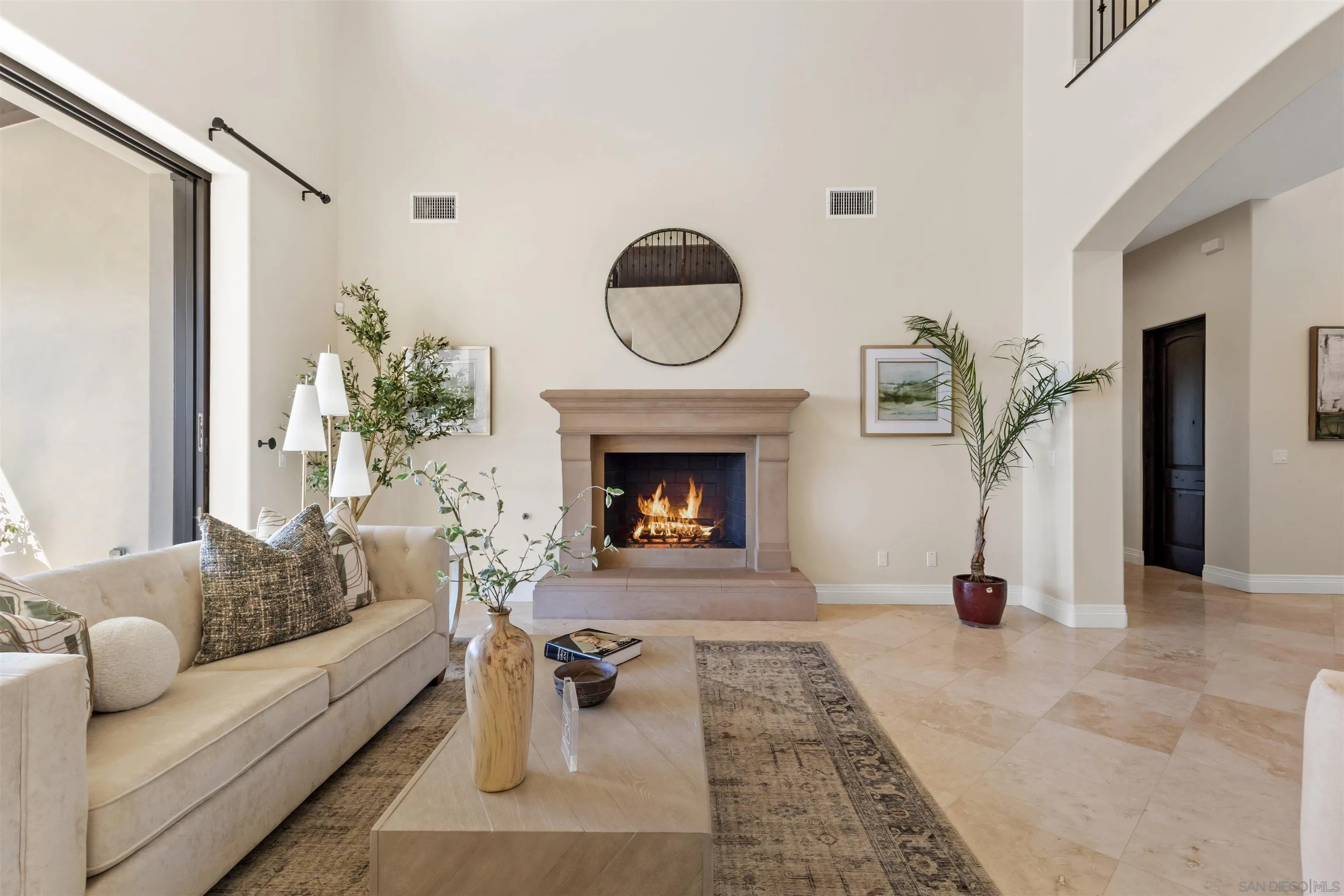 Completed in 2022, this exceptional custom estate is among the newest offerings in the Crosby at Rancho Santa Fe. Designed by Scott Grunst and set on a quiet, premier street, the home blends timeless architecture with modern refinement across approximately 6,523 square feet. A dramatic 22-foot foyer with arched windows, hardwood floors, exposed beams, and a wrought-iron staircase sets the tone. The chef’s kitchen features an eight-burner Wolf range with infrared charbroiler, 64-inch refrigerator/freezer, and dual dishwashers, complemented by a wet bar with kegerator and a temperature- and humidity-controlled wine cellar for approximately 800 bottles. Seamless indoor-outdoor living is achieved with disappearing pocket doors opening to a covered loggia with full outdoor kitchen, fireplace, and Wolf BBQ. The private backyard offers a PebbleTec® rim-flow pool, vanishing-edge spa, fire features, and unobstructed sunset views over a protected natural preserve with no rear neighbors. The flexible floor plan includes a main level executive office with fireplace and built-ins, plus a guest or secondary primary suite ideal for multigenerational living. Upstairs features a spacious primary retreat, two en-suite bedrooms, and a loft with private balcony. Within the highly rated Solana Santa Fe (K–8) and Torrey Pines High School districts, and near top private academies. Partial early Mello-Roos payoff in 2030.