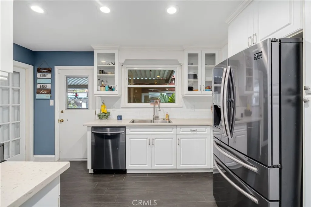 Welcome to this charming and cozy traditional single-family home located on a quiet street in Upland. Offering 3 bedrooms and 1.5 bathrooms across 1,028 square feet of living space, this inviting residence features warm wood flooring, an updated kitchen with upgraded countertops, cabinetry, stylish backsplash, and recessed lighting throughout. The bathrooms have been tastefully updated, and recent improvements include new windows and ceiling fans in the bedrooms. Situated on a spacious 7,215 square foot lot, the property shines with low-maintenance outdoor living, highlighted by a sparkling pool, above-ground spa, newly poured concrete sidewalks and entry areas, a welcoming front porch, and a rear patio perfect for entertaining. Adding exceptional versatility is a private guesthouse with its own entrance, bungalow charm, living area, kitchenette, bedroom, and bathroomideal for extended family, guests, or a home office setup. A detached garage with additional parking alongside, plus ample street parking, enhances convenience. Located near Upland High School, shopping, and everyday amenities, this home offers comfort, flexibility, and an excellent lifestyle opportunity.