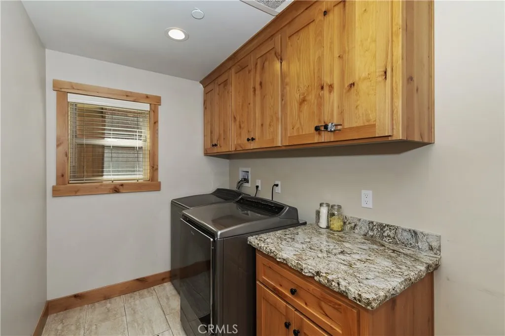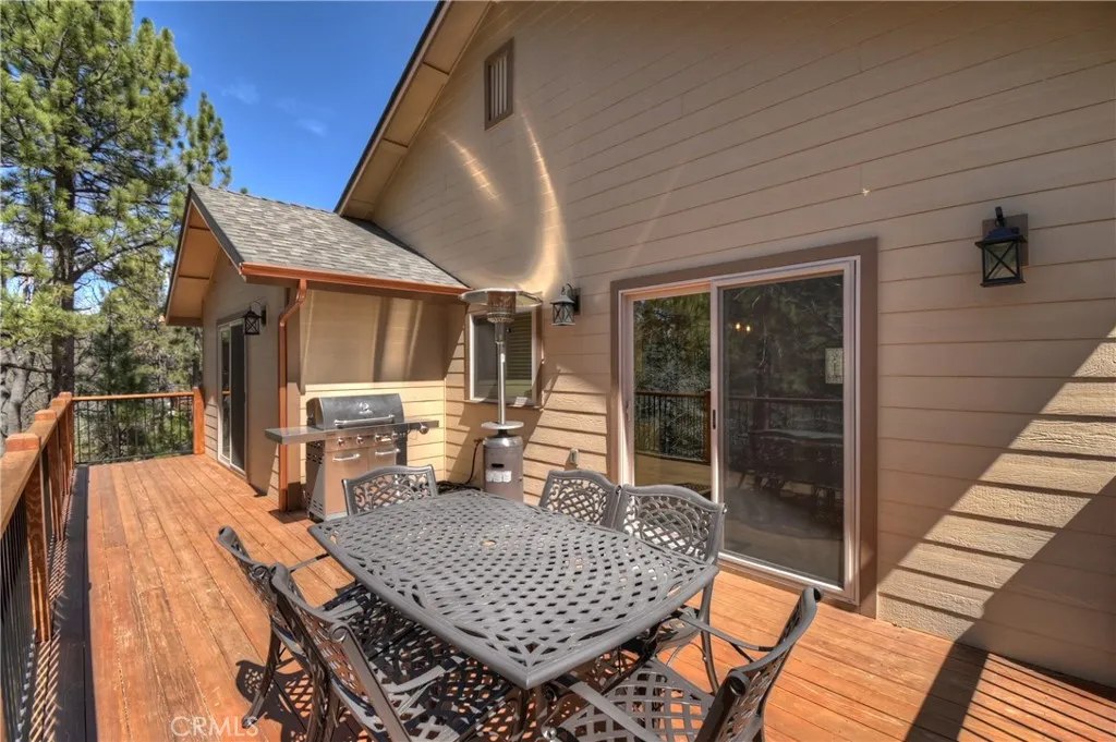 Stunning 2019 built, single story, level entry, mountain retreat in a prime central Big Bear Lake location ~ Experience refined mountain living in this exceptional custom-built home ~ It's had one loving owner and is ideally situated close to the top of a street that ends at the access to Town Trail and other Snow Summit trails, is just minutes from the ski slopes, Big Bear Lake, and walking distance to the Village ~ Featuring 1,613 square feet of open, light and bright living space, this home has 3 bedrooms and 2 bathrooms, and is thoughtfully designed with high-end finishes ~ The expansive great room showcases soaring vaulted Alderwood ceilings, rich engineered hardwood flooring, and an impressive floor-to-ceiling rock fireplacecreating a warm gathering space ~ The large kitchen is both elegant and functional, appointed with granite countertops with a live edge, large center island with lots of cabinets, custom Alderwood cabinetry, and stainless steel appliances, even has a dishwasher ~ It's perfect for entertaining or quiet evenings at home ~ The primary suite offers a slider out to the deck, large closet and ceiling fan ~ The master bath has double sinks, a beautifully tiled walk-in shower featuring a flat pebble stone floor and granite accents, and more gorgeous Alderwood cabinets ~ Step outside to enjoy the serene mountain setting from the covered front porch or the private rear deck, both redwood with wrought iron accentsideal for entertaining beneath the pines ~ This home offers year-round recreation and luxury mountain living at its finest ~ Additional amenities in