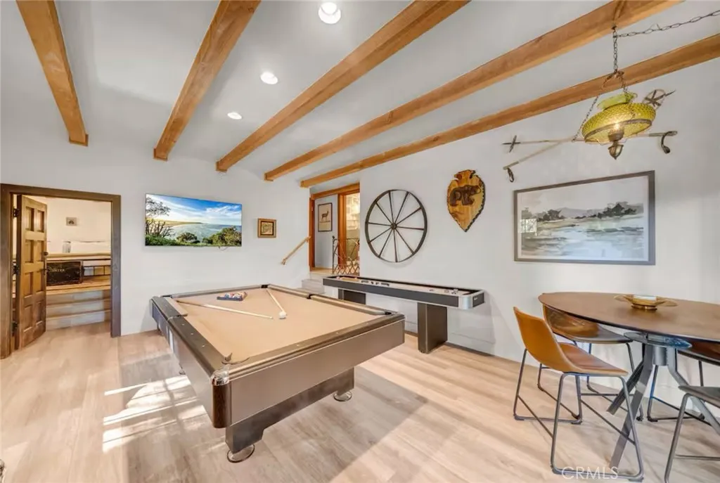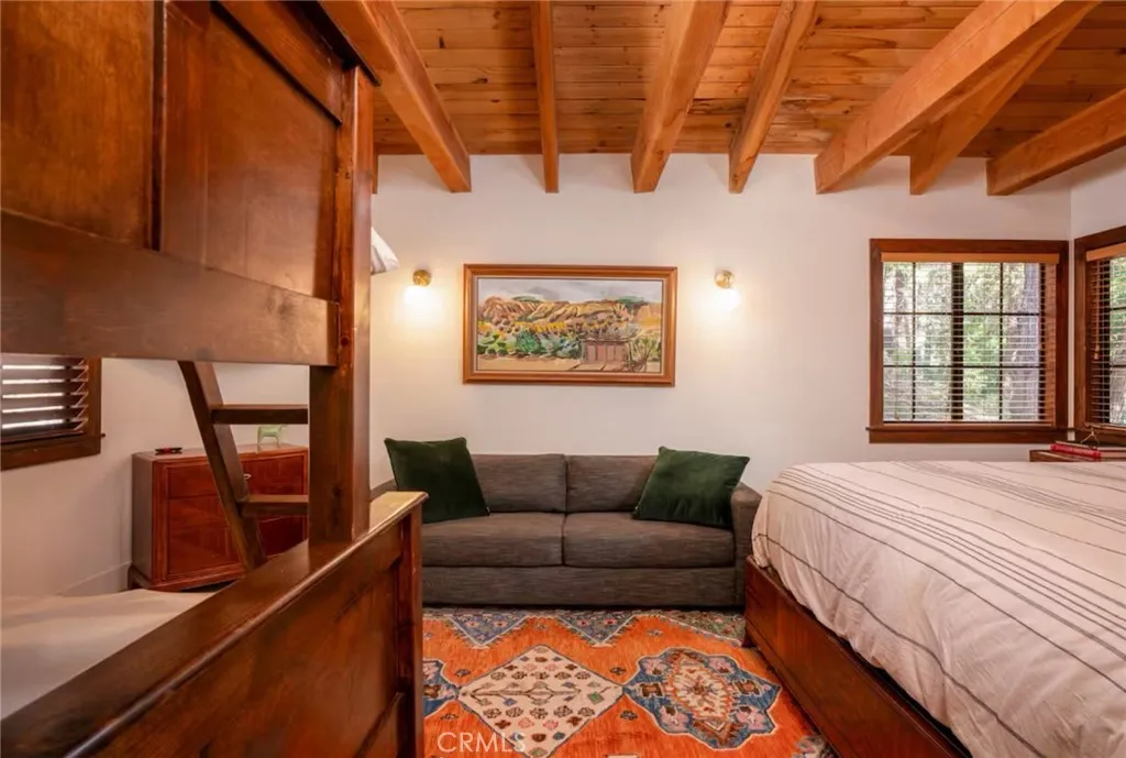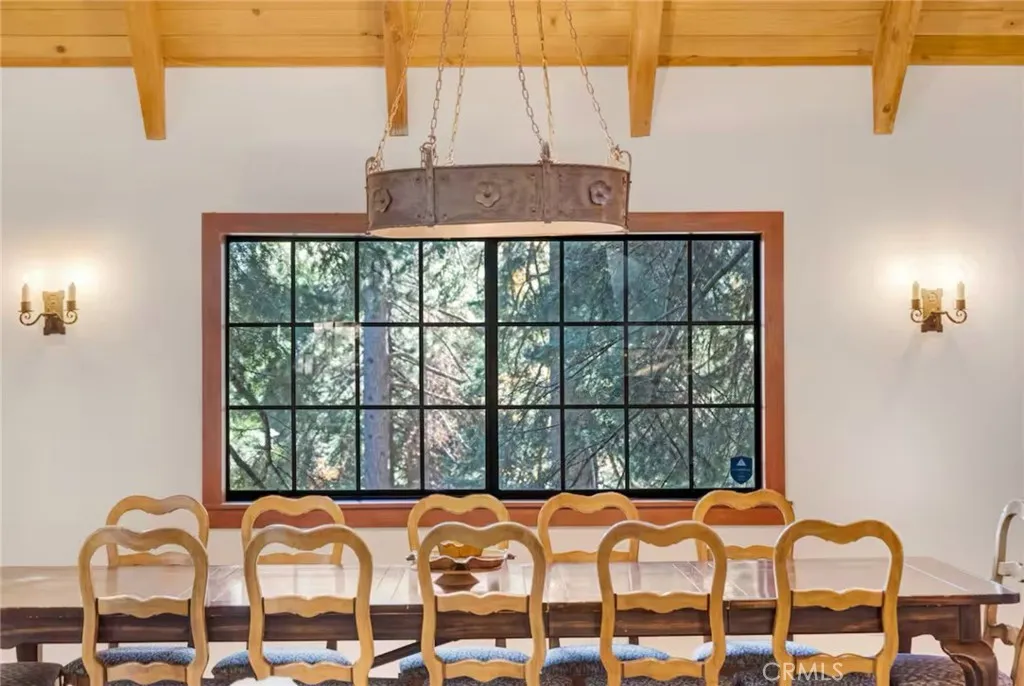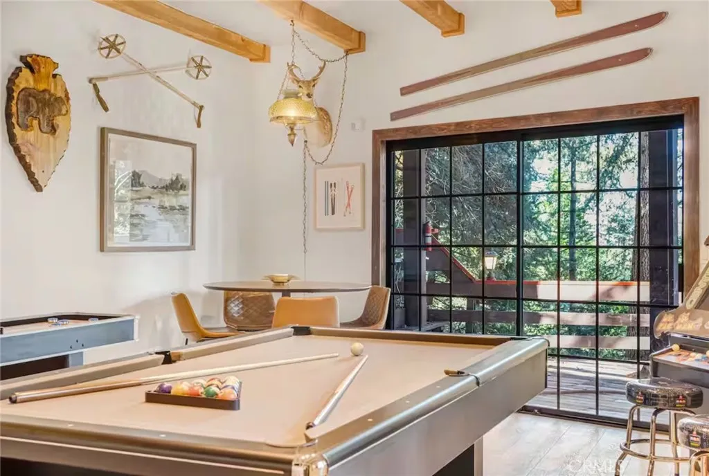 Off-The-Beaten-Path find this Completely Remodeled 2-Story Dramatic Beauty in Coveted Skyforest offering Supreme Privacy located just minutes from SkyPark and Lake Arrowhead Village! This Residence boasts 2,447 Sqft of Detailed Quality Upgrades inclusive of Tile, Stone, Hardwood Flooring, Dual Entry Access Areas, Expansive Outdoor Deck Entertaining Areas, Detached One Bedroom Guest House/ADU Unit complete with Kitchen, Bath with Stack Washer and Dryer, Detached 2-Car Garage with Firewood and Storage Area below, all set on a Private Wooded 42,420 Sqft Lot. Upper Level Main Level Features: Vaulted Wood Beamed Cathedral Ceiling Skylight lit Living Room with Wood Burning Rock Fireplace combo Open Dining Area that seats 12, Opens to Rock Wall Kitchen with Center Isle with Kitchen-Aid Appliances, Tiled Formal Entry that doubles as Storage and Pantry Area, Primary Bedroom and Bath with walk-in Tiled Shower. Lower-Level Features: 2 Guest Bedrooms one of which is Ensuite, Large Family/Game Room, Utility Closet with Side-by-Side Washer and Dryer. Both Levels of the home have access to Private Decking Areas. The photos speak volumes come make it yours!