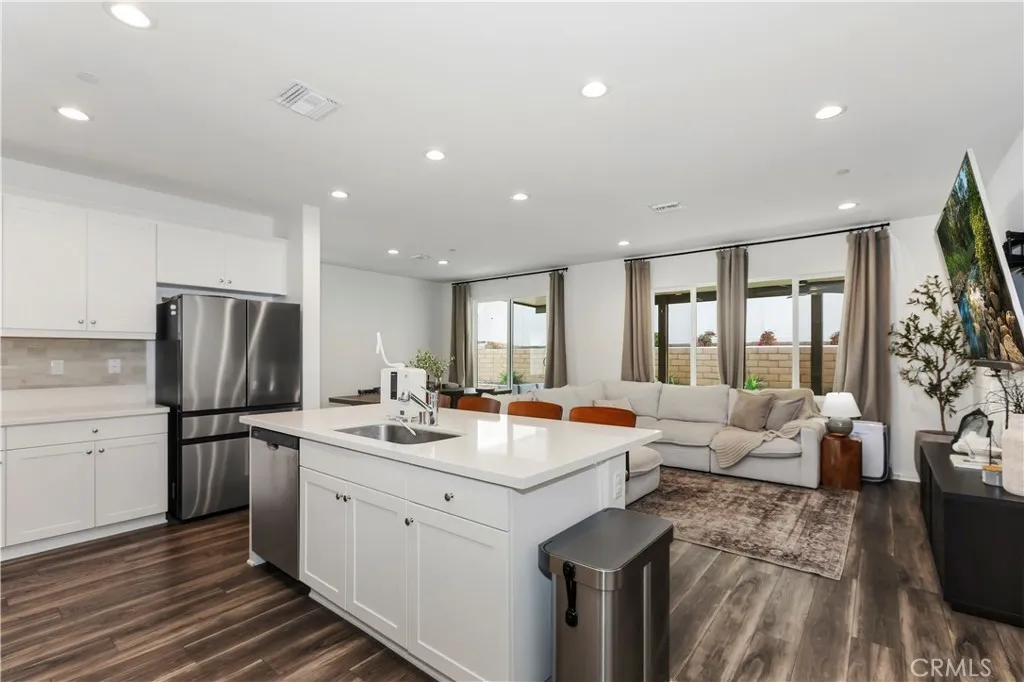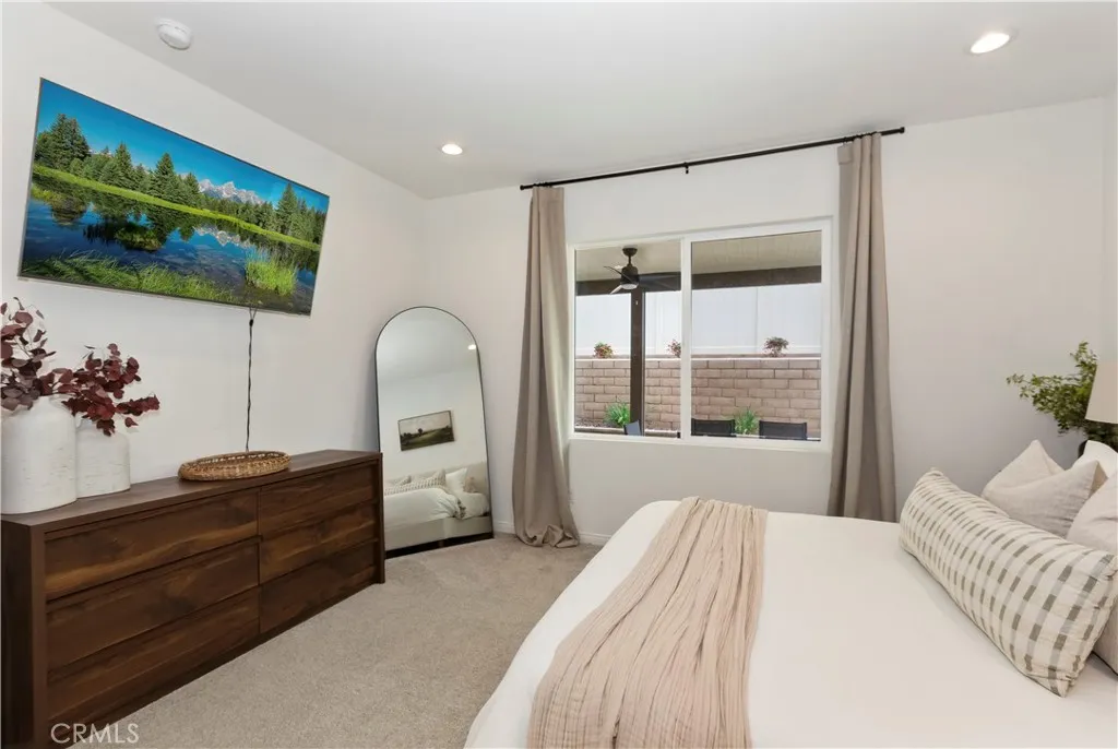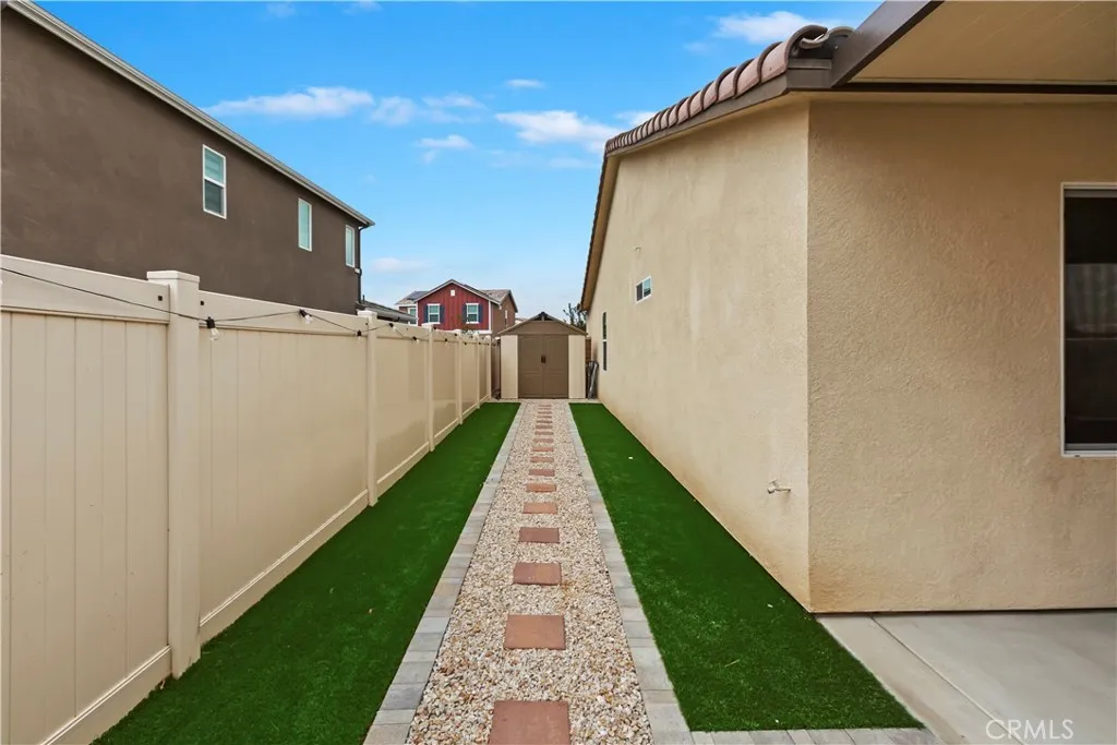 Honestly, do not miss out on this beautiful Single-Story Spanish-Style KB Home with Modern Upgrades! This house is so clean and ready for you to move in. Everything has been done. It shows like a model home. It is well taken care of and you will be impressed. This beautifully designed home offers an open and inviting floor plan. The entrance leads into a spacious great room that seamlessly connects the living, dining, and kitchen areasperfect for both everyday living and entertaining. This home features numerous upgrades, including 9-foot ceilings, elegant quartz kitchen countertops, and durable vinyl plank flooring throughout the main living areas. The kitchen is a true centerpiece, complete with a large island. The primary suite offers a private retreat with a generous walk-in closet and an en-suite bathroom featuring dual sinks, an added linen closet, and a walk-in shower. Step outside to a fully landscaped front yard designed with drought-tolerant materials and equipped with an automatic drip irrigation system, providing both beauty and efficiency. The front yard driveway has also been cement-extended for more parking space. The backyard has been fully landscaped with brand new cement flooring, brand new covered patio, fans, lights, grass-like landscaping, stone, plants and so much more! Both side yards have been fully hard-scaped with a built-in walk ways with pavers and gravel. On one side, enjoy a new shed for all of your landscaping tools. This home is Energy Star rated, and solar is available for purchase or lease to maximize energy savings. Conveniently situated n