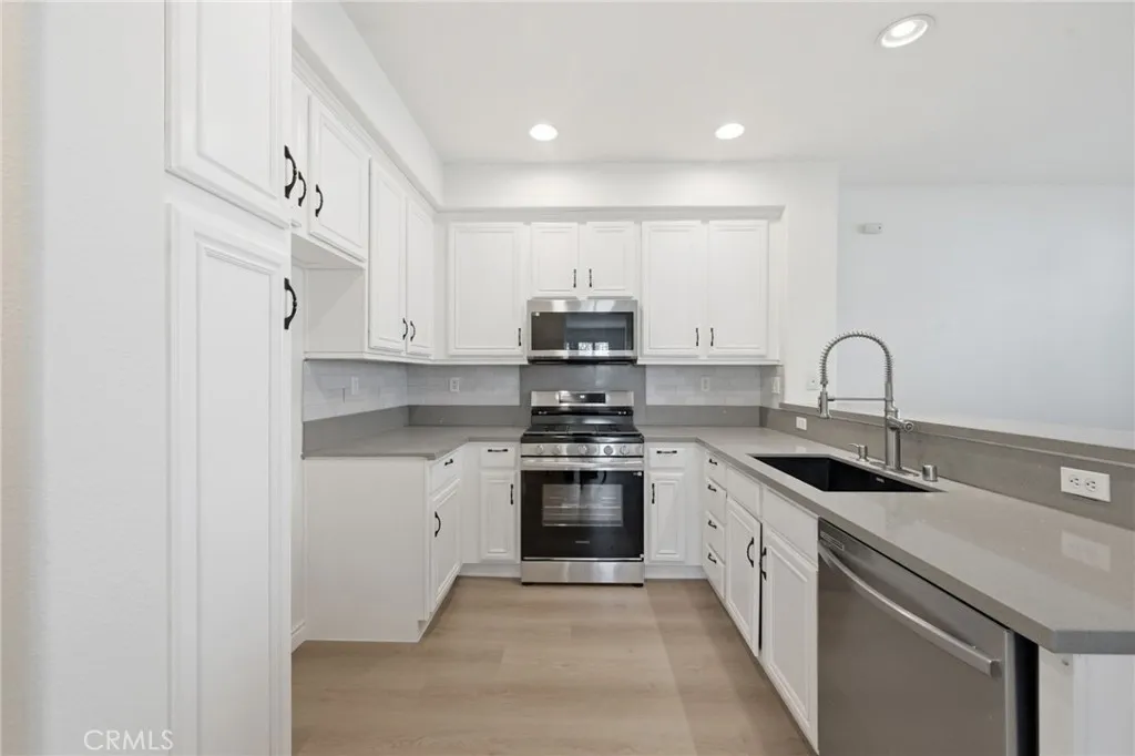 Beautiful FHA approved corner-unit townhome located in the highly desirable gated Strathmore Community directly across from Victoria Gardens. This spacious two-story home features 3 bedrooms and 2.5 bathrooms with a functional and inviting floor plan designed for comfortable living and entertaining. The home has been beautifully updated with brand-new light white oak wood flooring and fresh interior paint throughout, creating a bright and modern feel. High ceilings and recessed lighting enhance the open layout and bring in abundant natural light. The upgraded kitchen features elegant quartz countertops, a stylish backsplash, and all brand-new stainless steel appliances, along with a newly designed bar area with floating shelves, perfect for entertaining. The downstairs bathroom has been completely redesigned with a floating vanity, concrete countertop, designer fixtures, and modern finishes. Additional upgrades include a new water heater, offering added efficiency and peace of mind. Upstairs offers three spacious bedrooms, including a primary suite with a private balcony and en-suite bathroom. Enjoy a charming front porch, perfect for relaxing or hosting guests, along with a two-car garage and comfortable living spaces throughout. Located within the highly regarded Etiwanda School District and Chaffey Joint Union High School District. Residents enjoy resort-style amenities including a pool, spa, and playground within this secure gated community. Ideally located just steps from Victoria Gardens, offering premier shopping, dining, entertainment, and convenient freeway access.