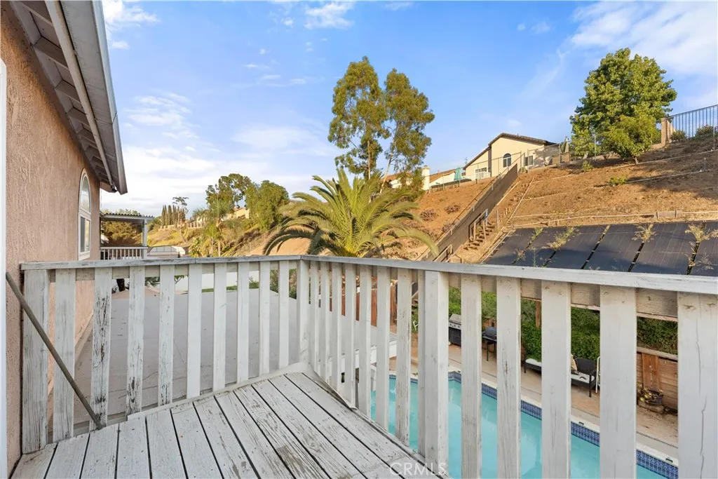 POOL HOME!!! *** Welcome to this beautiful two-story, 5-bedroom, 2.5-bath home situated on a spacious 8,712 sq ft lot in one of Jurupa Valley's most sought-after neighborhoods. Offering 2270 sq ft of living space, this property blends comfort, excitement, and curb appeal. Step into this bright and inviting home, where soaring ceilings and abundant natural light create an airy, open feel from the moment you walk in. As you enter the kitchen you will notice that it's well-equipped with granite counter tops, stainless steel sink and stainless-steel appliances, a wine fridge and lots of cabinet space with a beautiful view of the sparkling pool and spa. The home offers a convenient laundry room, a half bath and a full bedroom on the the main floor. The spacious living area with modern tile flooring, anchored by a charming brick fireplace for relaxing and enjoying those special moments. As you go up the stairs, the bedrooms provide privacy and relaxation. Other notable features include the NEW AC, NEW dual pane windows, New pump for pool, NEW water heater, and best of all 25 paid off solar panels providing you with free electricity throughout the year. Conveniently located in proximity to freeways, schools, parks, shopping, and the list goes on. This home is ideal for entertaining and everyday life.