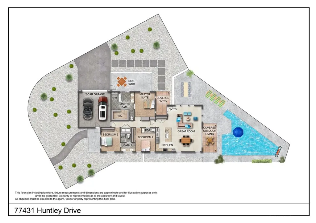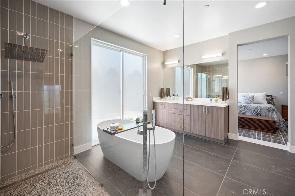 Built in 2020 and extensively upgraded beyond builder standards, this solar-powered Indian Wells home lives like brand-new construction without the wait, the hassle, or the added expense of post-close improvements. Located in one of the most desirable pockets of the valley, directly adjacent to the Indian Wells Tennis Garden, this property puts you minutes from the BNP Paribas Open, El Paseo shopping and dining, PGA Tour golf in La Quinta, the Coachella polo grounds, and premier hiking trails. Few homes offer this level of convenience with this much privacy. Inside, the home is turnkey and impeccably finished. The gourmet kitchen features custom cabinetry, JennAir Noir appliances, a generous custom pantry, and a dramatic quartz waterfall island designed for both everyday living and entertaining. Vaulted ceilings and expansive windows fill the open living spaces with natural light, complemented by custom window treatments already installed no projects left to complete. The primary suite offers a true retreat with a spa-level bath including a deep soaking tub, zero-threshold rain shower with private patio access, and a custom walk-in closet designed for functionality and elegance. Unlike many properties in the area, this home includes owned solar, whole-house Ecowater filtration, advanced security, EMF protection, and a fully completed outdoor environment. The custom pool with beach entry and dual Baja shelves, paired with a Carrara marble fire table, creates an immediate resort experience from day one. Additionally, the rare short-term rental opt-out status provides valuab