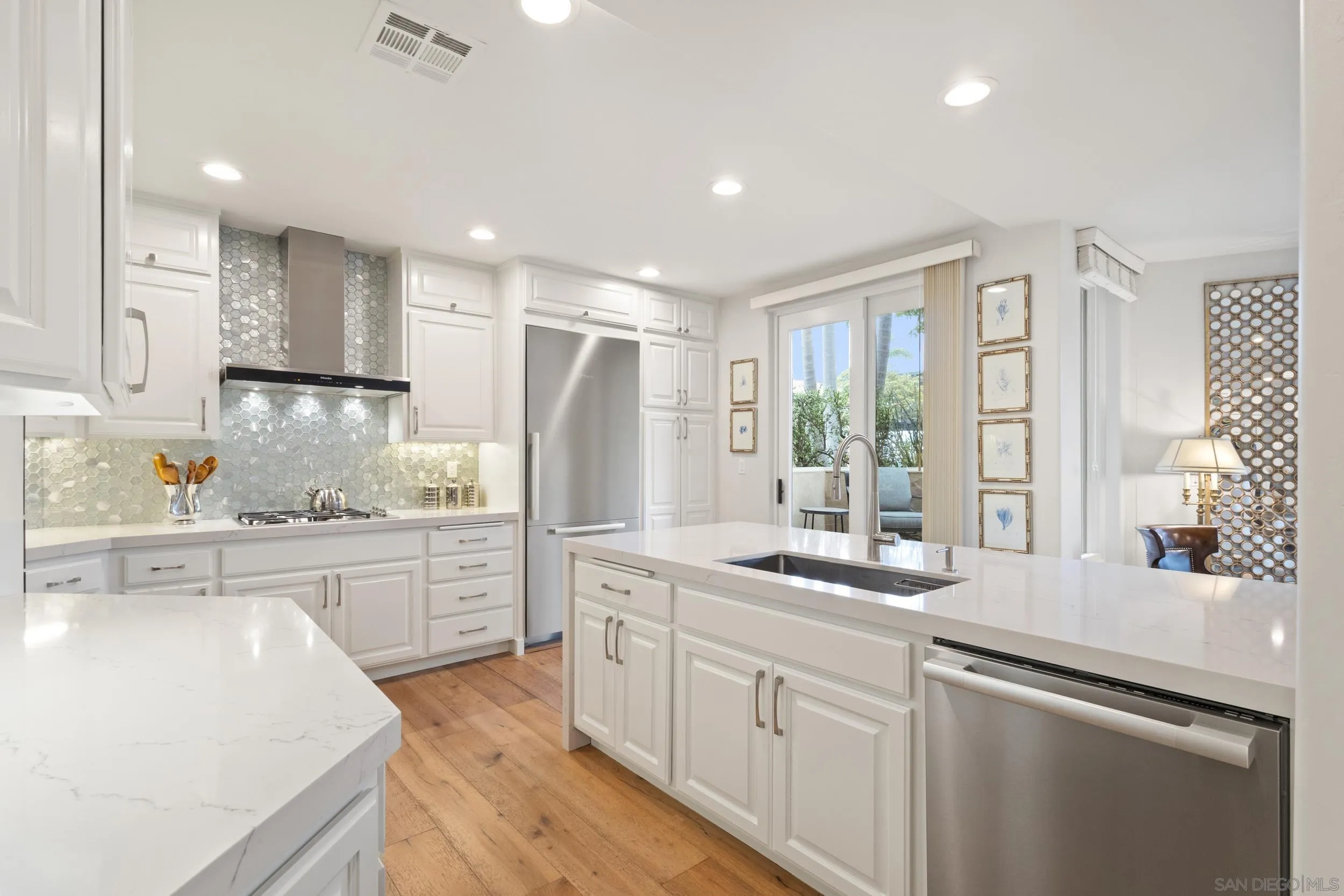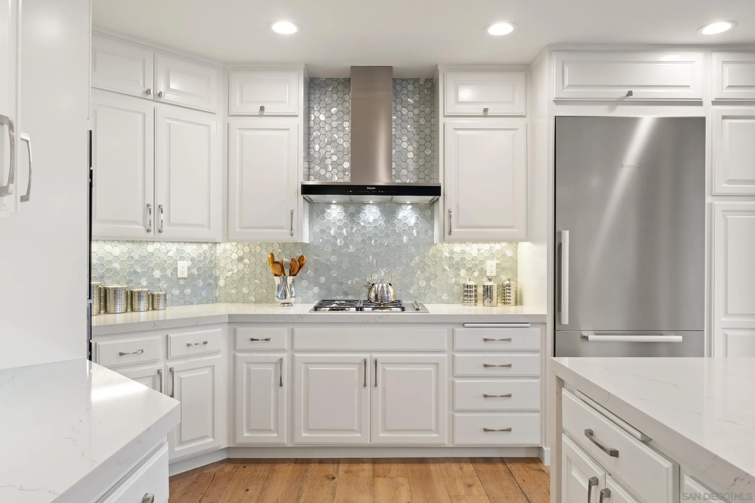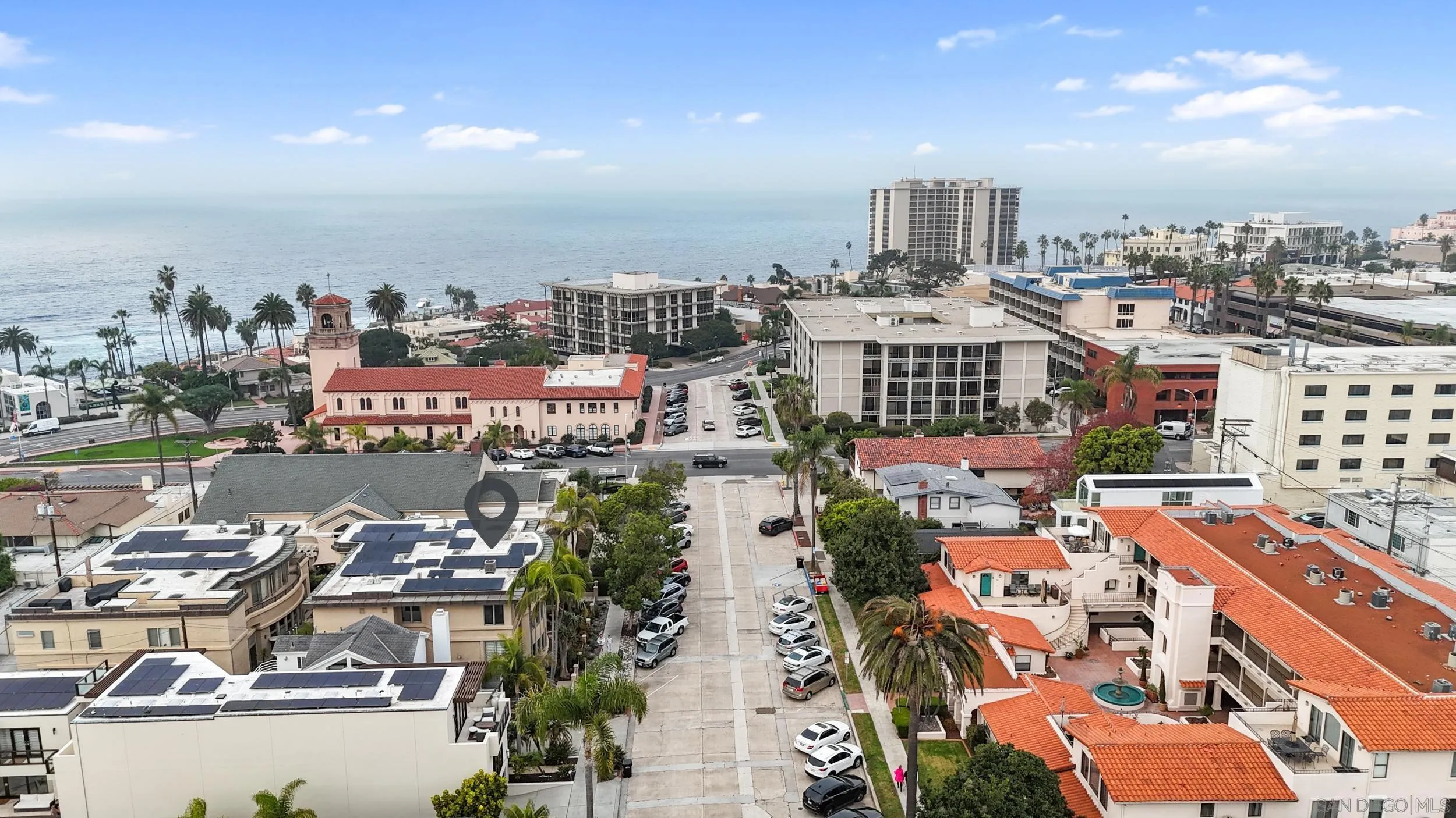 Experience refined single-story living just moments from the ocean and the energy of La Jolla Village. This beautifully reimagined 3-bedroom, 2.5-bath residence offers 2,460 sq. ft. of coastal charm and contemporary luxury in a tranquil, tree-lined setting just 2.5 blocks from the beach and close to world-class dining, shopping, The Bishop’s School, and the La Jolla Art Museum. Thoughtfully updated throughout, the home features owned solar, new interior paint, plush bedroom carpeting, upgraded bathrooms, and elegant French Oak floors. The chef’s kitchen is equipped with all Miele appliances, a gas cooktop, stainless sink, quartz countertops, full-height cabinetry, and a striking backsplash. The open-concept living area centers on two sun-filled patios ideal for al fresco dining or quiet relaxation, along with a versatile den/media room perfect for a TV lounge, reading room, or office. The serene primary suite offers a generous walk-in closet and a remodeled spa-like bath. A dedicated laundry room and abundant storage enhance daily convenience. Additional highlights include a two-car garage with extensive storage plus a separate room with a SubZero refrigerator—ideal as an office, gym, or storage space. The home also offers air conditioning, secure entry, and elevator access. With its walkable location, timeless updates, and boutique setting of only five homes, this residence captures the essence of La Jolla Village living—elegant, effortless, and coastal.
