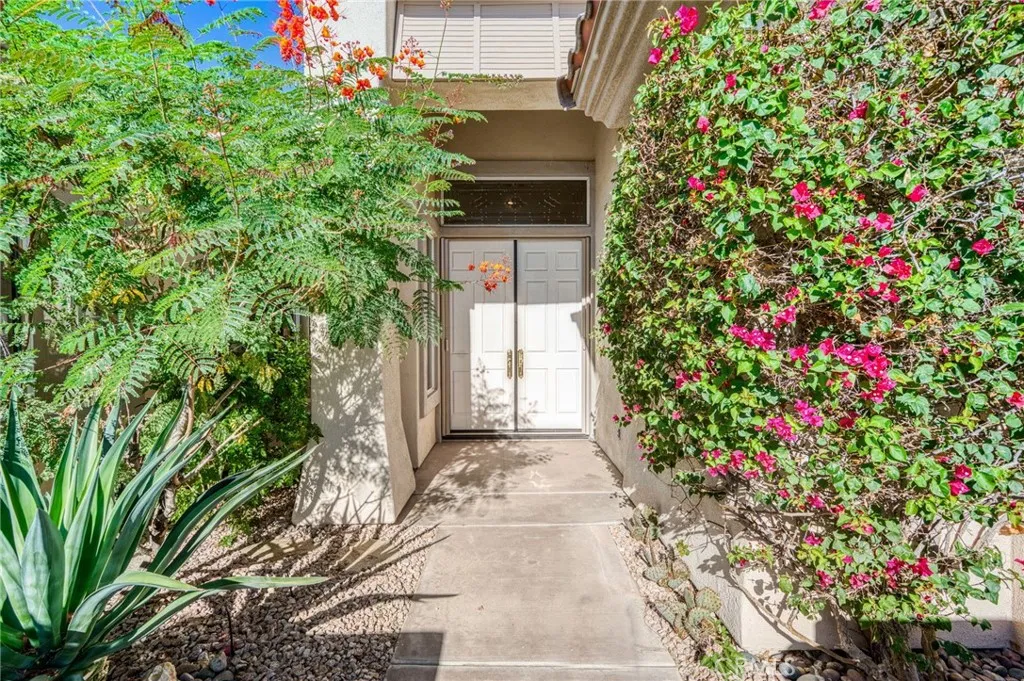 Seldom do you find a HOME in an Award Winning 55+ community with a backyard this BIG and this FUN. Situated on a quiet cul-de-sac, this private, low maintenance resort-style home sits on an exceptional 13,000+ square foot lot and West facing backyard. The 3 Bedroom, 3 Bath SAN REMO Estate Model is approximately 2,432 square feet, with a striking Pebble Tec pool and newly renovated waterfall Jacuzzi. The entire space is designed for enjoyment and relaxation, with a BBQ plumbed for natural gas, ceiling fans, covered patio, ambient night lighting, and areas that could be transformed into mini synthetic putting greens by sinking some cups into the green. Step into the house and the first thing you notice is the ample floor to ceiling windows with Plantation Shutters throughout, affording a view of the stunning backyard and providing ample light in the living spaces. The Kitchen features Granite counters, Gas burning cooktop, 2 Pantries and a Breakfast Bar. This Home has an open-concept design, with views from the Kitchen to the spacious Family Room, Formal Living Room and beyond to the Pool. Theres also a dedicated Dining Room that can easily seat your Thanksgiving guests and a sizable Inside Laundry Room with sink. The systems in this Home have been upgraded (2024) saving the inconvenience or the considerable expense of doing it yourself. They include a NEW Heating /AC system with a top-of-the line Air Filtration system plus 2 programmable thermostats and a NEW 50 gallon Water Heater with heat pump recirculation. Electricity is provided by IID, not SCE. The 2 car plus golf car