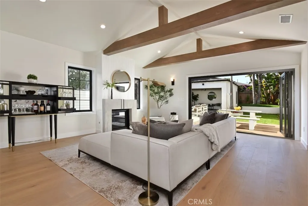Perched above the street, from the moment you approach, the home commands attention, located in the desirable neighborhood of WESTPORT HEIGHTS in Westchester. Masterfully expanded and reimagined with warm contemporary design and modern amenities that offers a luxurious yet relaxed lifestyle.Theinterior showcases a foyer,an elegant powder room adding to the home's sophisticated appeal, an open layoutofexpansive living and diningwith beamed vaulted ceilings thatelevate the public entertaining spaces, recessed lights, several windowsthat bring in abundance of natural light.The formal dining room, positioned off of the entry, isa welcoming place for hosting. Thechef's kitchen, a true centerpiece, isequipped withsleek cabinetryandanchored by an island with seating, quartz countertops,and a large pantry. Underfoot the space features wide plank wood ( engineered) flooring throughout. This newly rebuilt home features 4bedrooms, 3.5 bathrooms, approximately 2227 sq ft of thoughtfully designed living space.Primary suite is aserene retreat, situated at the back, has vaulted ceilings, many windows for natural light, includes awalk-in closet, aluxuriousspa inspiredbathroomwith dual vanities, soaking tub andwalk in shower.A Jr ensuite, at the front, is spacious and bright with its ownbeautifulbathroom with shower. Two generously sizedsecondary bedrooms share a beautiful, light & bright, full bathroom with tub.The inviting family room with beautiful fireplace is spacious, with folding glass doors that opento the back yardto maximize thedesirable SoCal indoor-outdoor lifestyleideal for bot