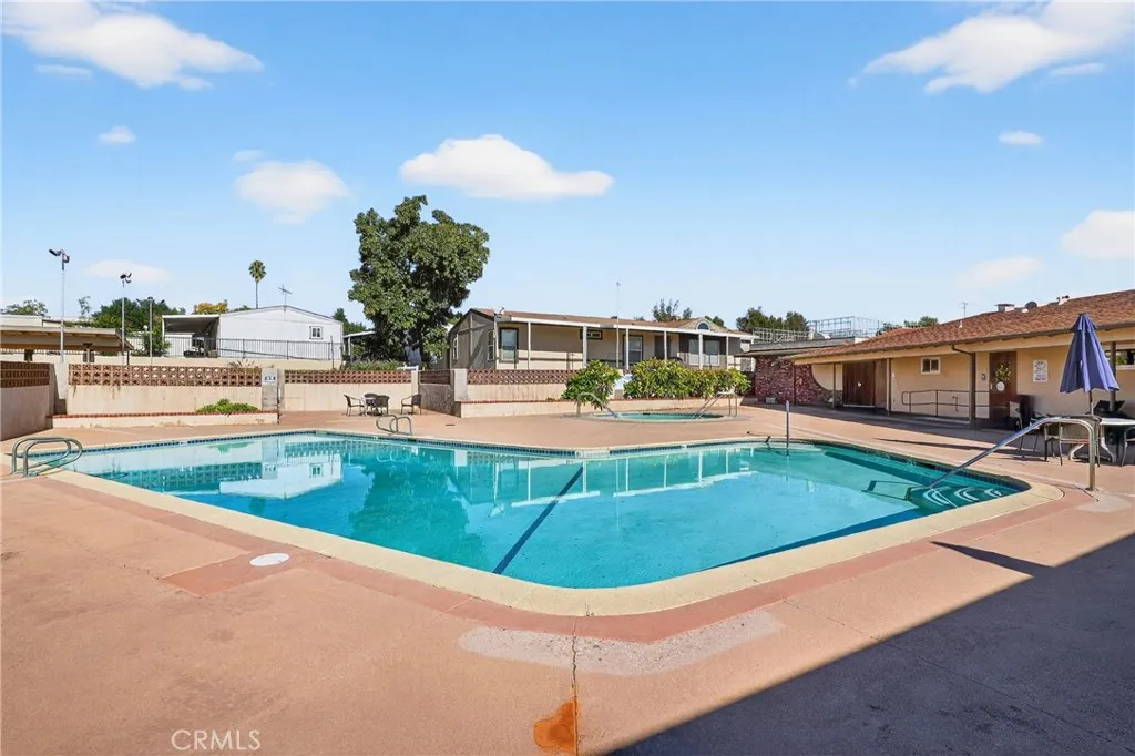 Welcome to this well-cared-for 2-bedroom, 2-bath home located in a peaceful, clean, and pet-friendly 55+ community, conveniently close to shopping, dining, and easy freeway access. This home offers a comfortable and functional layout with a large living room, a separate dining area, and a spacious kitchen with plenty of cabinet space. The primary bedroom features its own private bathroom, and the second bedroom is ideal for guests, hobbies, or a home office. Enjoy relaxing outdoors under the covered patio and the convenience of a 2-car carport. The community offers wonderful amenities including a swimming pool, jacuzzi, clubhouse, and gym, perfect for those looking to enjoy an active and social lifestyle.