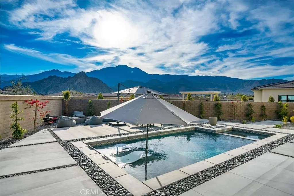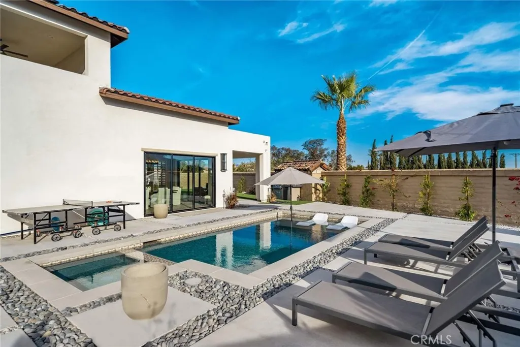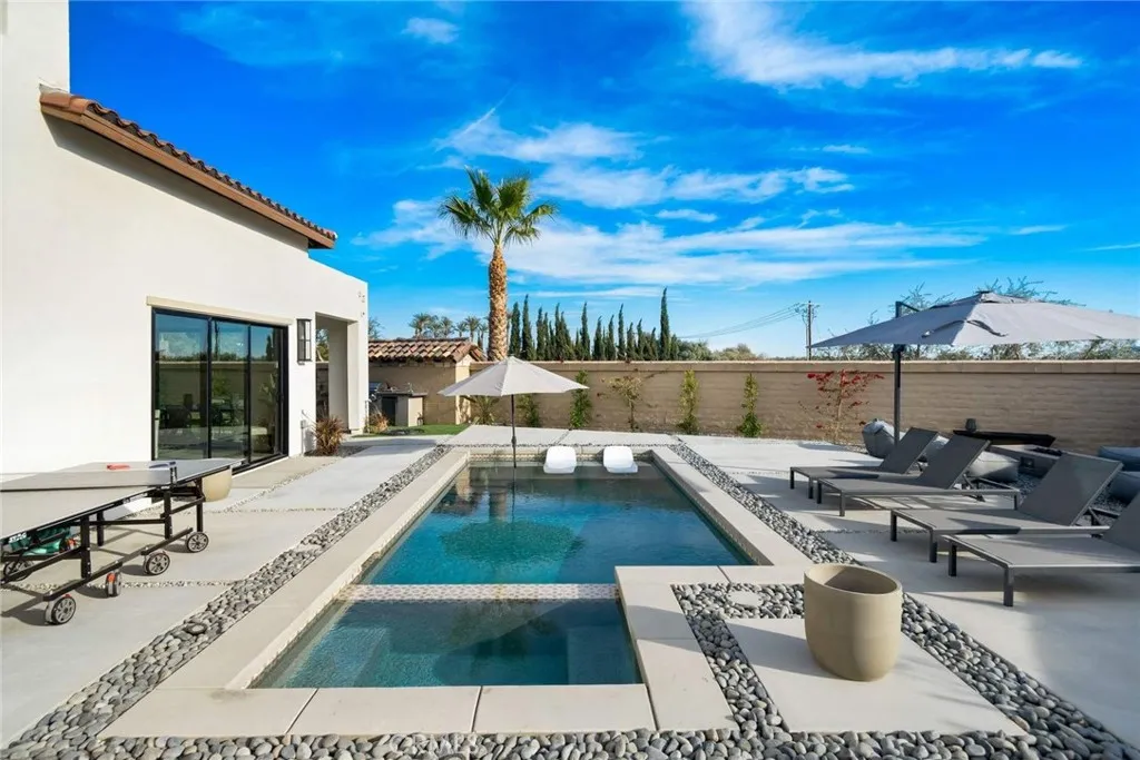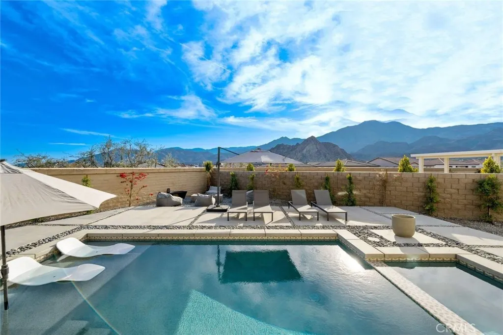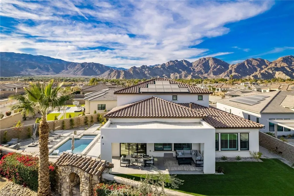 Fully furnished newly built home in the prestigious gated community of Stone Creek Ranch. This model home comes furnished and features 5 bedrooms, 5 bathrooms, office and theater room. The master bedroom is located on the first floor with a luxurious master bathroom with a soaking tub with an oversize shower. The living and Dining room boast over 20 ft ceilings with wood floors and sliding doors leading to the amazing entertainer's yard with a saltwater pool and spa, built-in bbq grill and outdoor fireplace with spectacular views of Coral Mountain. This home is just a few minutes to PGA West and Greg Norman public courses, and Coachella and Stagecoach festivals.