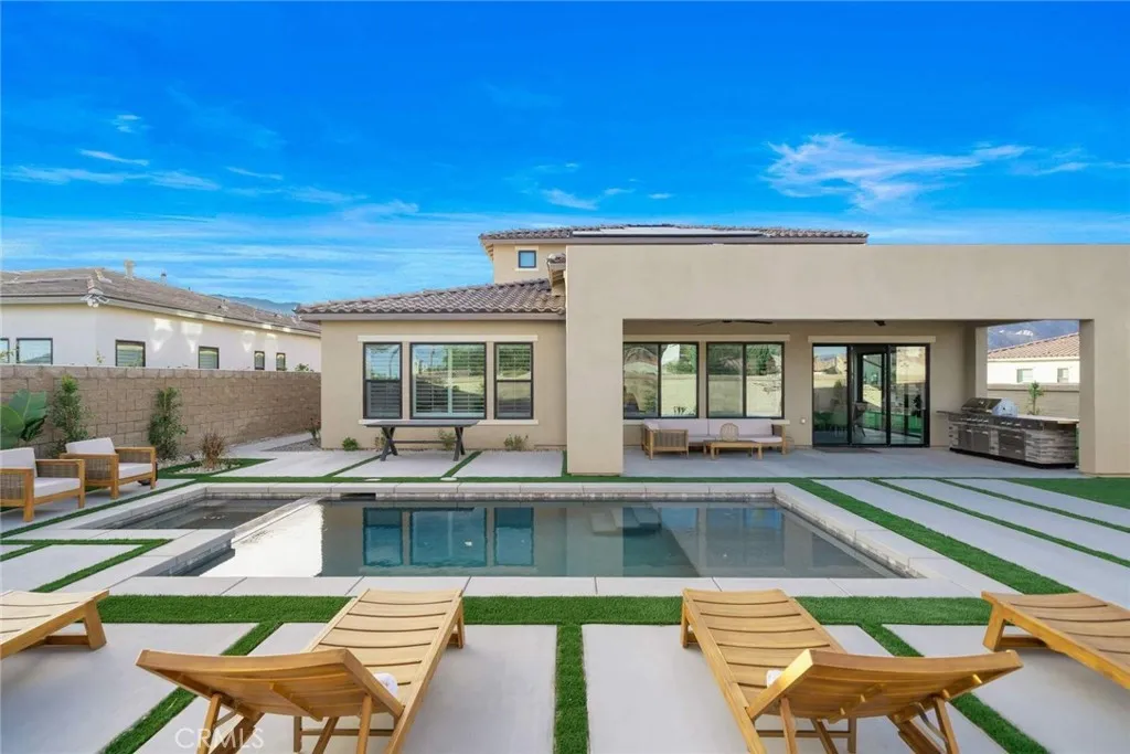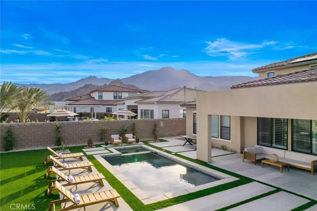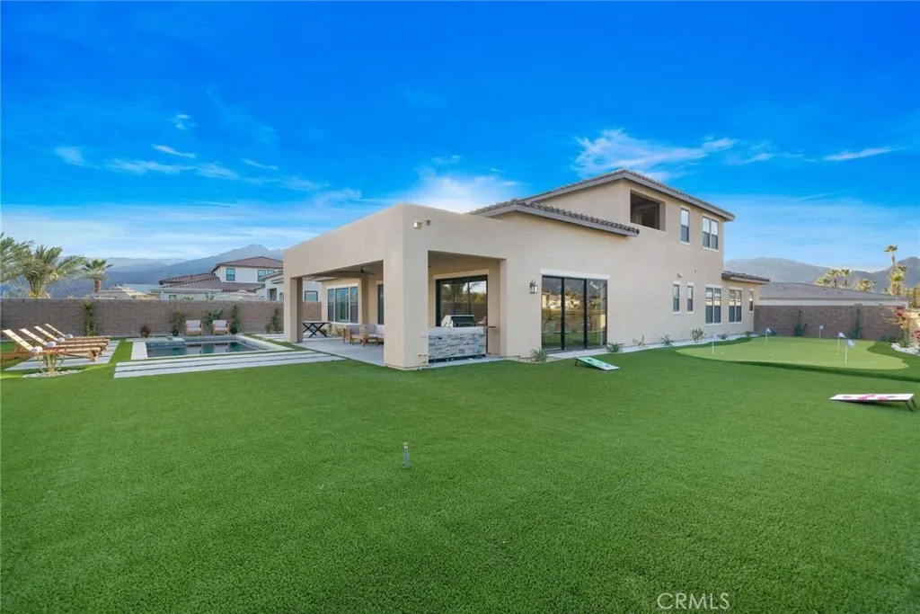 Fully furnished newly built home in the prestigious gated community of Stone Creek Ranch. This model home comes fully furnished and features 5 bedrooms, 5 bathrooms, office and upstairs game room. The master bedroom is located on the first floor with a luxurious master bathroom with a soaking tub with an oversize shower. The living and Dining room boast over 20 ft ceilings with wood floors and sliding glass doors leading to the amazing entertainer's yard with a saltwater pool and spa, built-in bbq grill and outdoor fireplace with an oversized putting green with spectacular views of Coral Mountain. This home is just a few minutes to PGA West and Greg Norman public courses, and Coachella and Stagecoach festivals. This home is truly amazing and a must see.